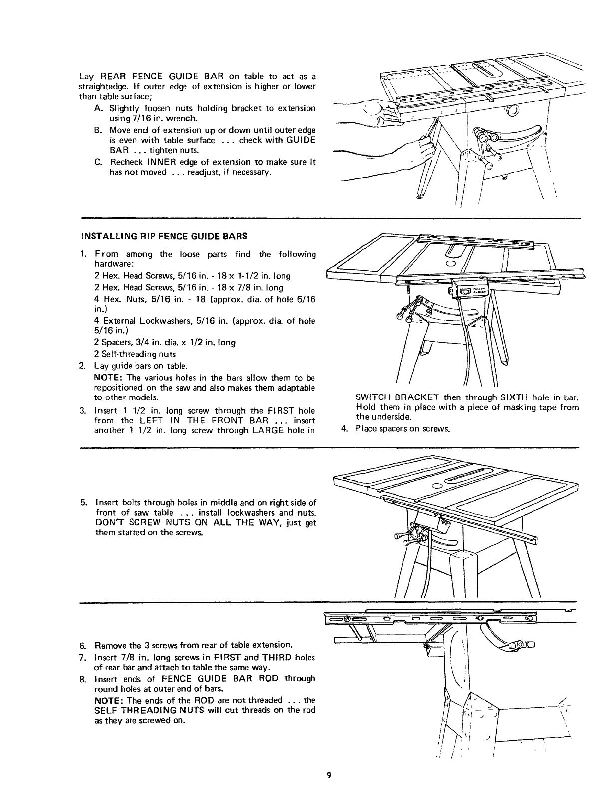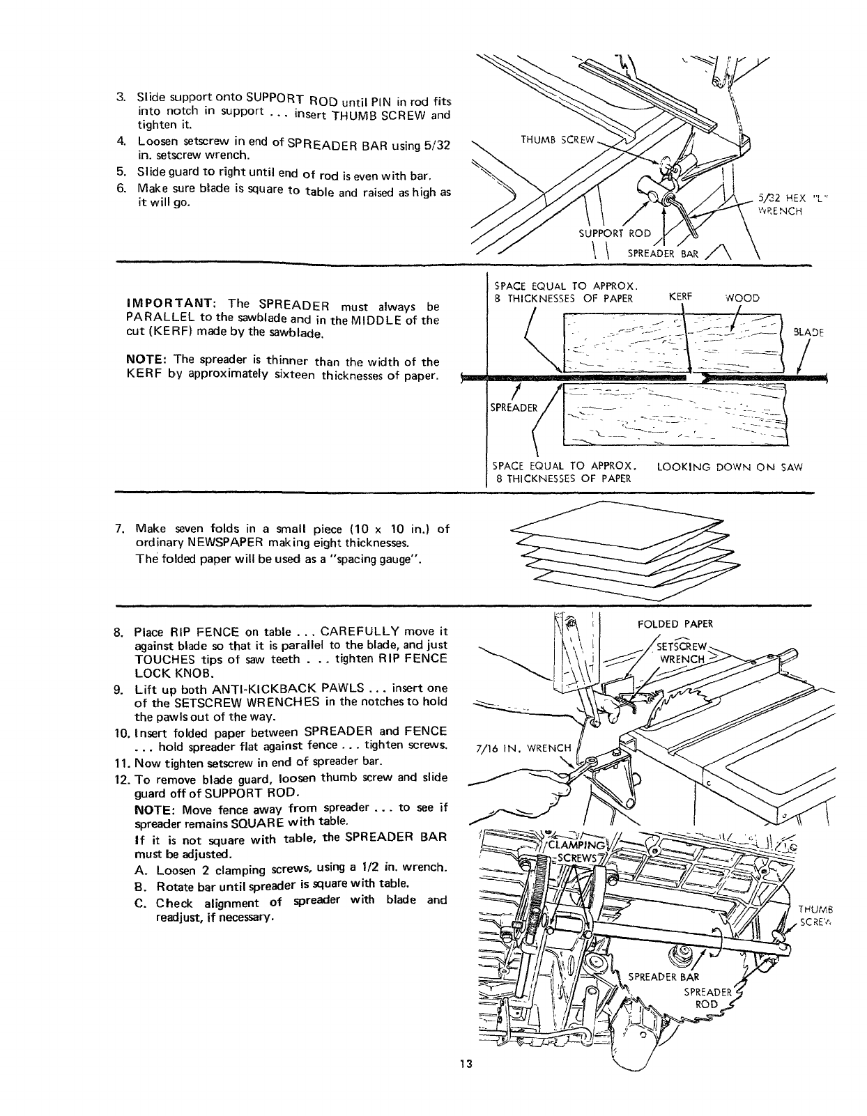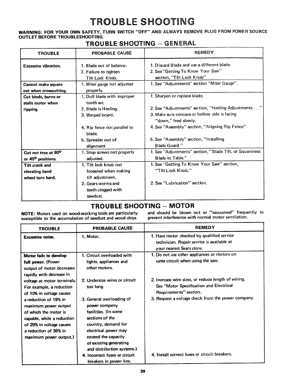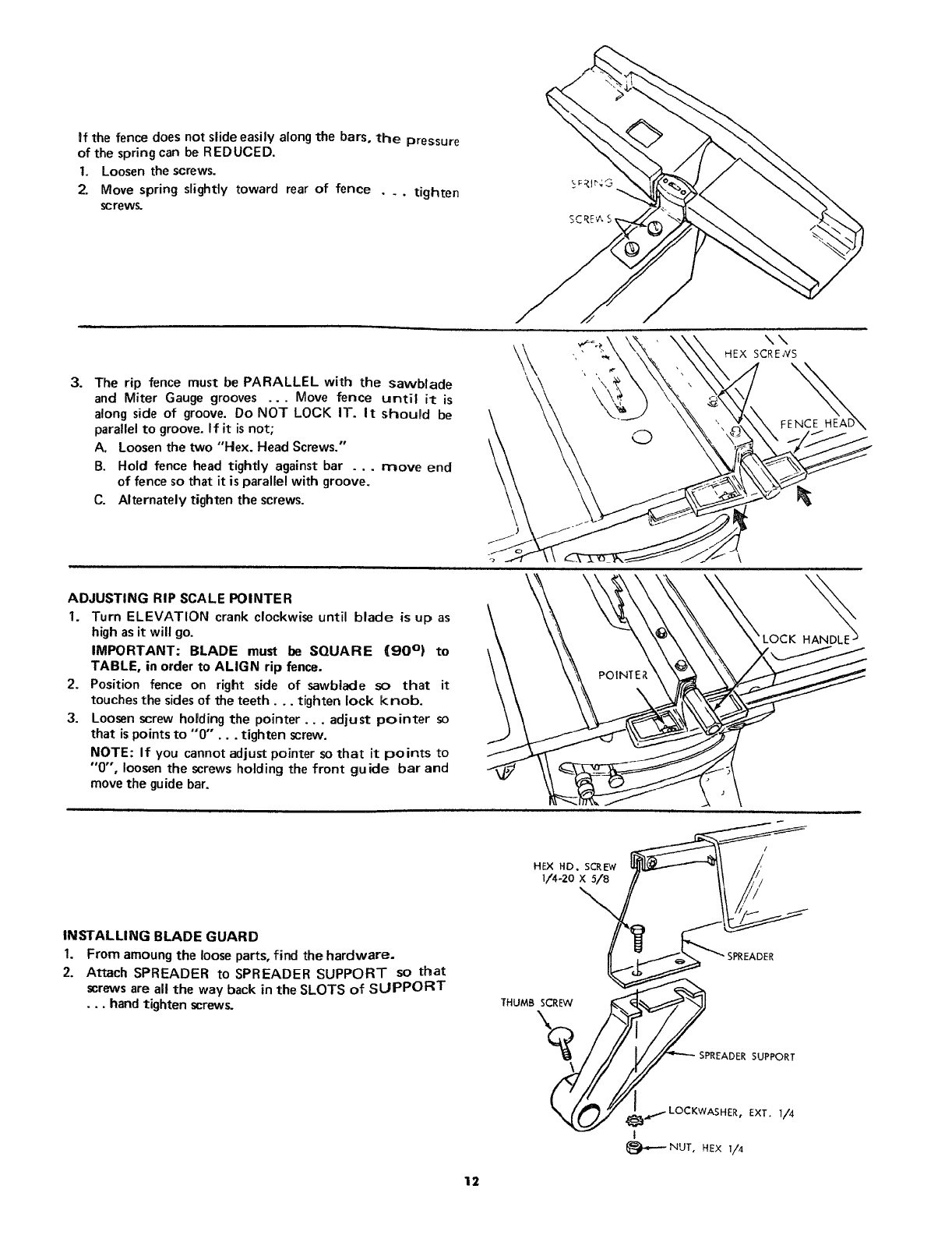 PARTS LIST FOR CRAFTSMAN 12-! NCH MOTORIZED TABLE SAW