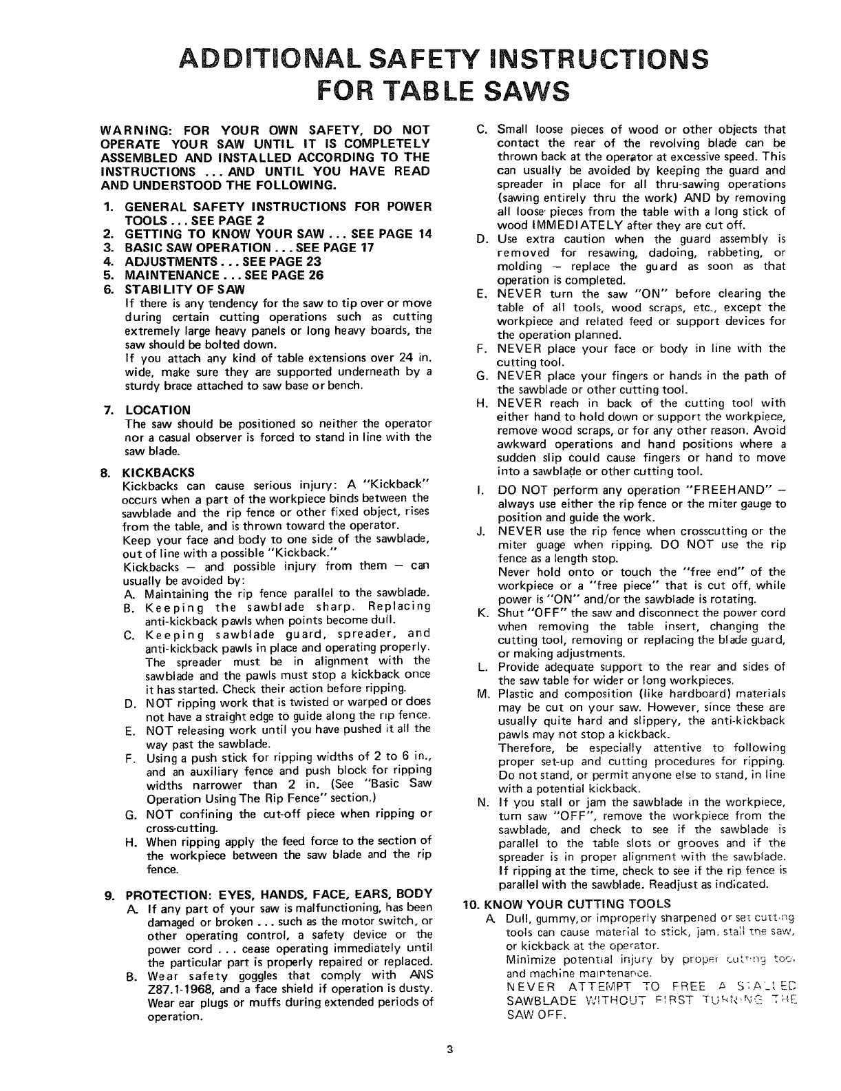 FULL ONE YEAR WARRANTY ON CRAFTSMAN TABLE SAWS
