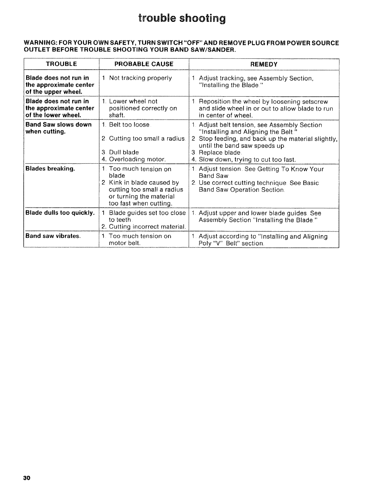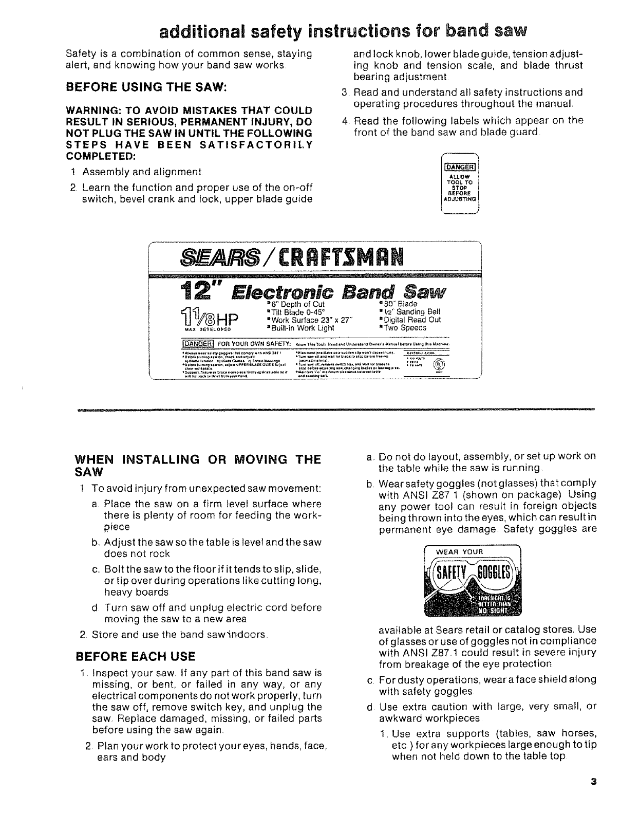 Craftsman 113247440 User Manual 12 INCH ELECTRONIC BAND SAW Manuals And Guides L0706365