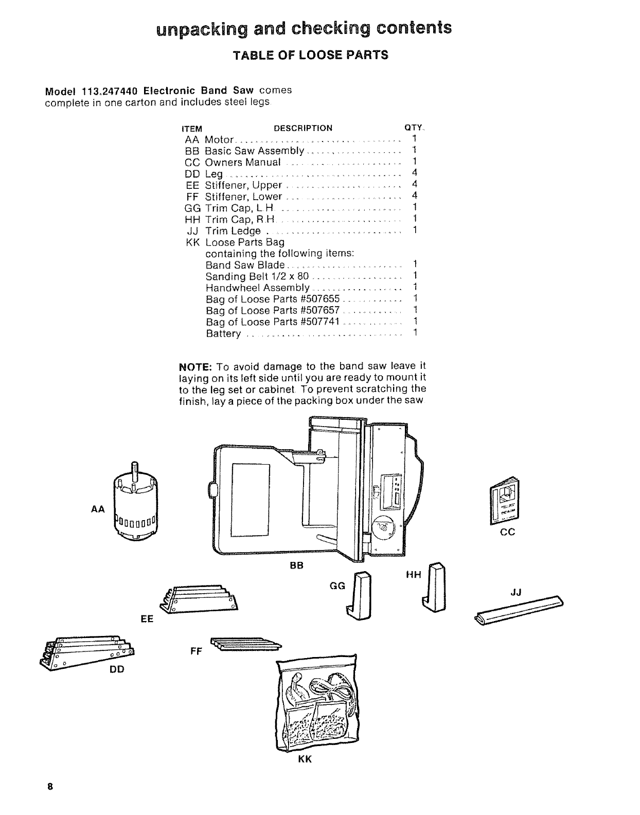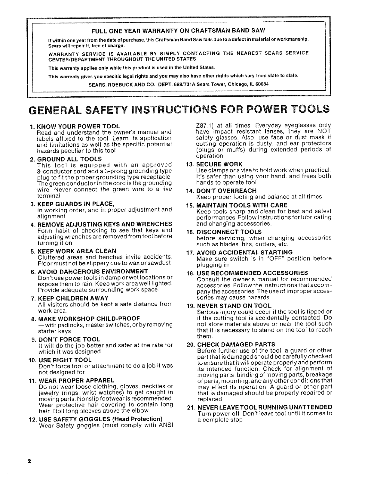 FULL ONE YEAR WARRANTY ON CRAFTSMAN BAND SAW