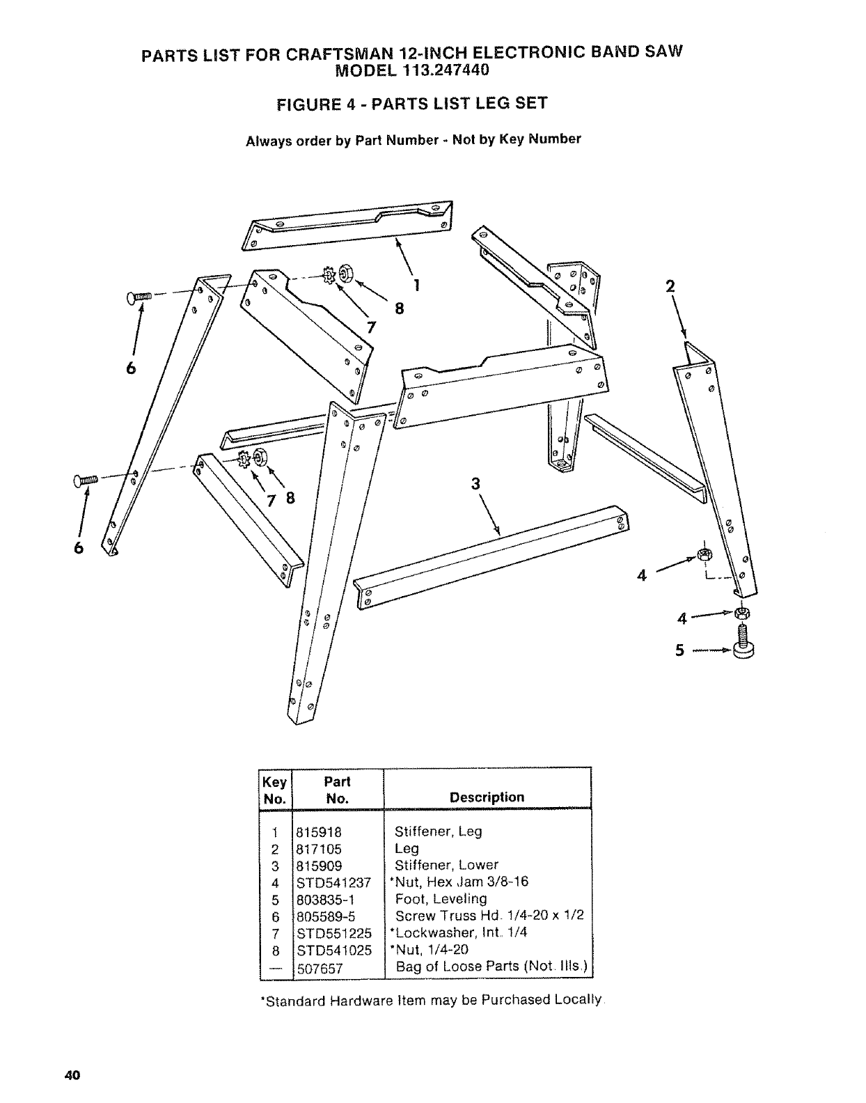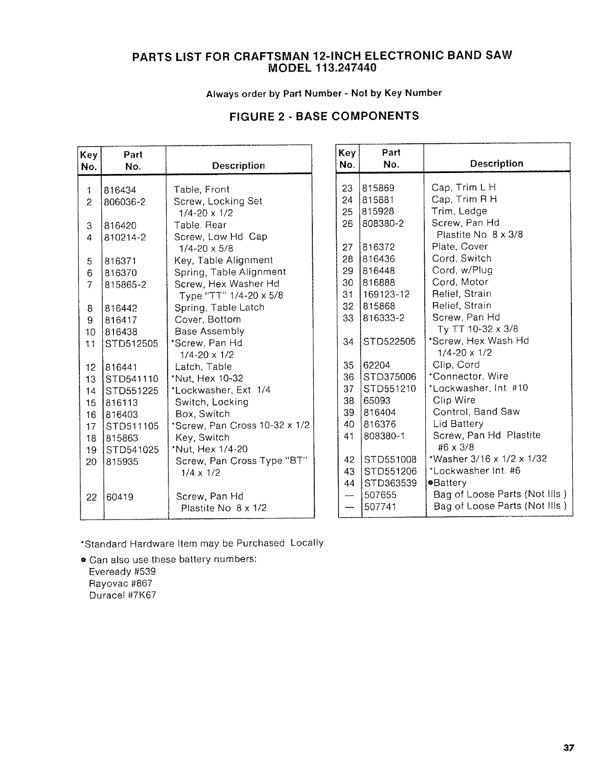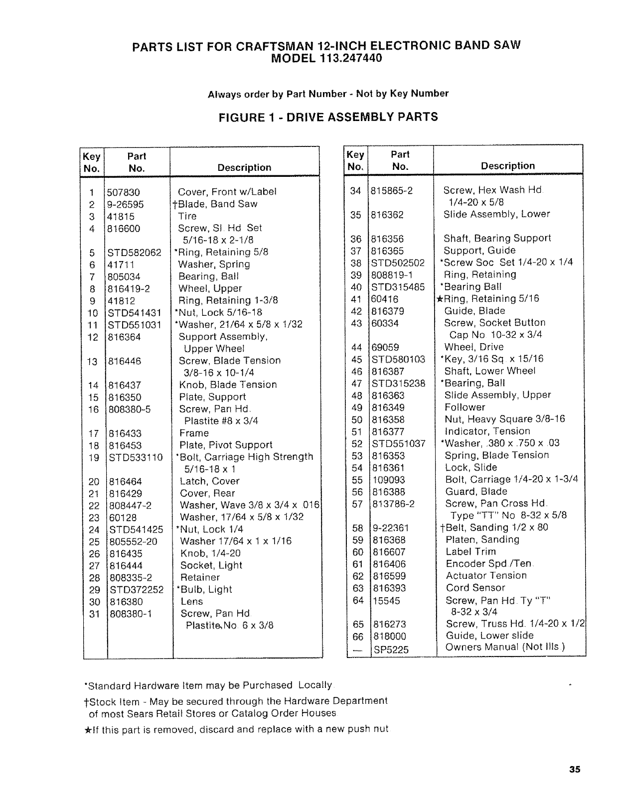 PARTS LiST FOR CRAFTSMAN 12-INCH ELECTRONIC BAND SAW