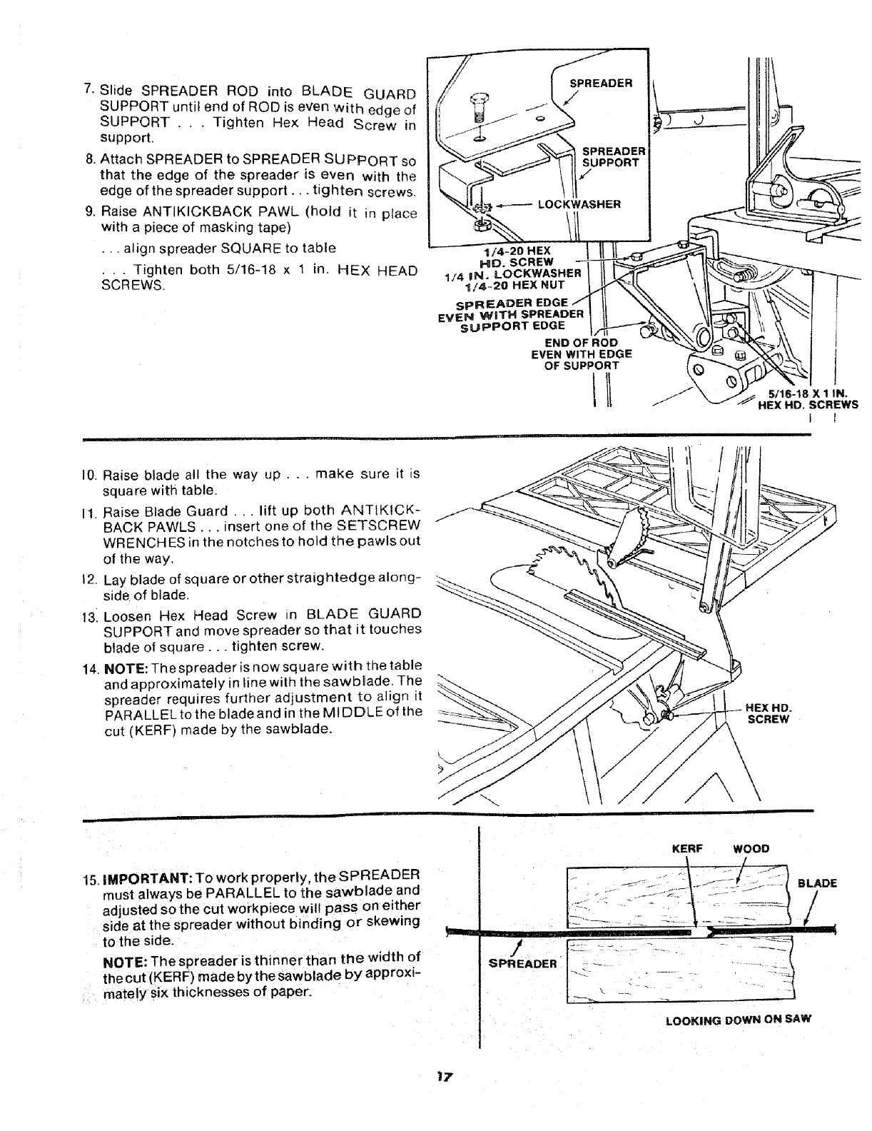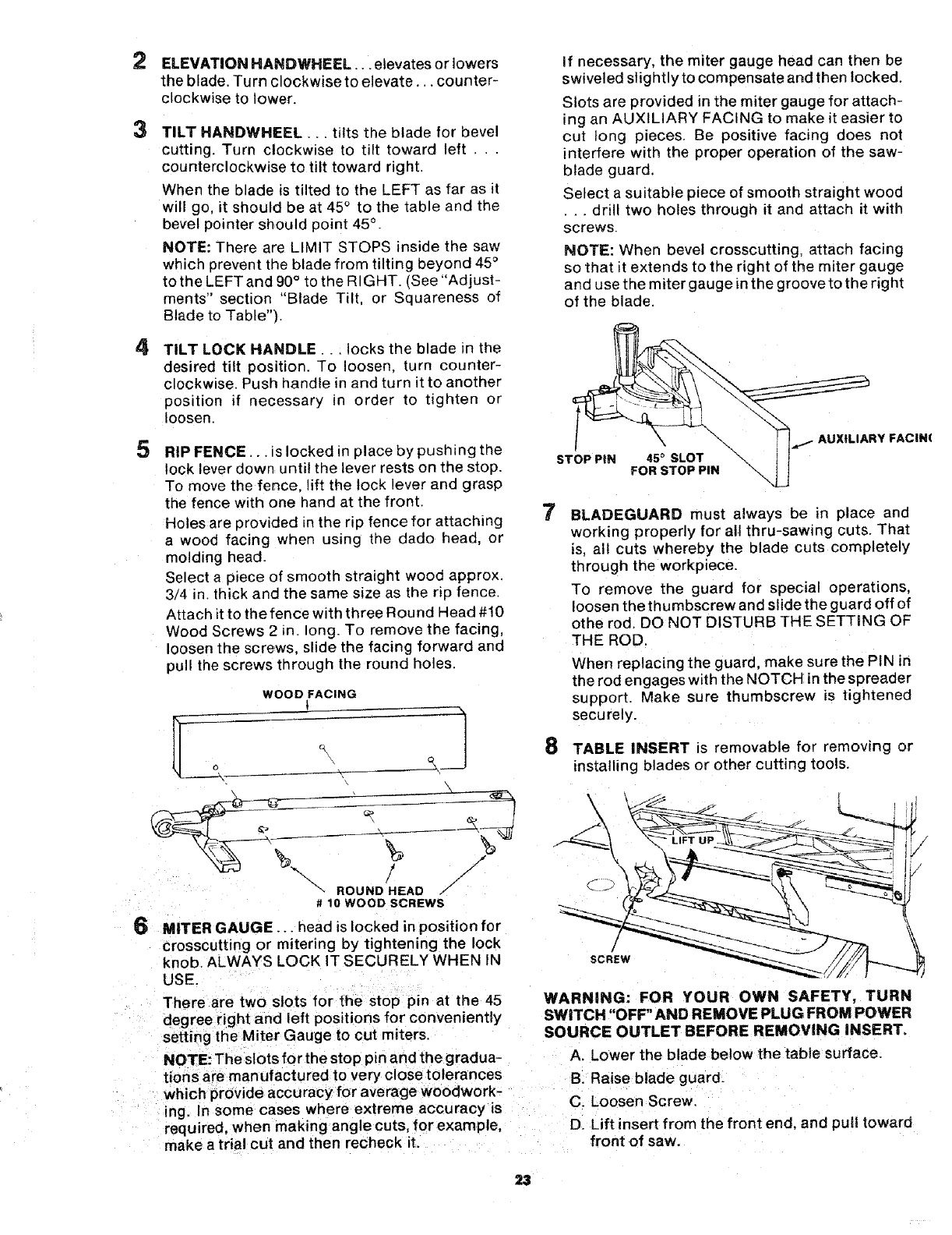 guard, spreader, anti-kickback device, miter gauge, 7.