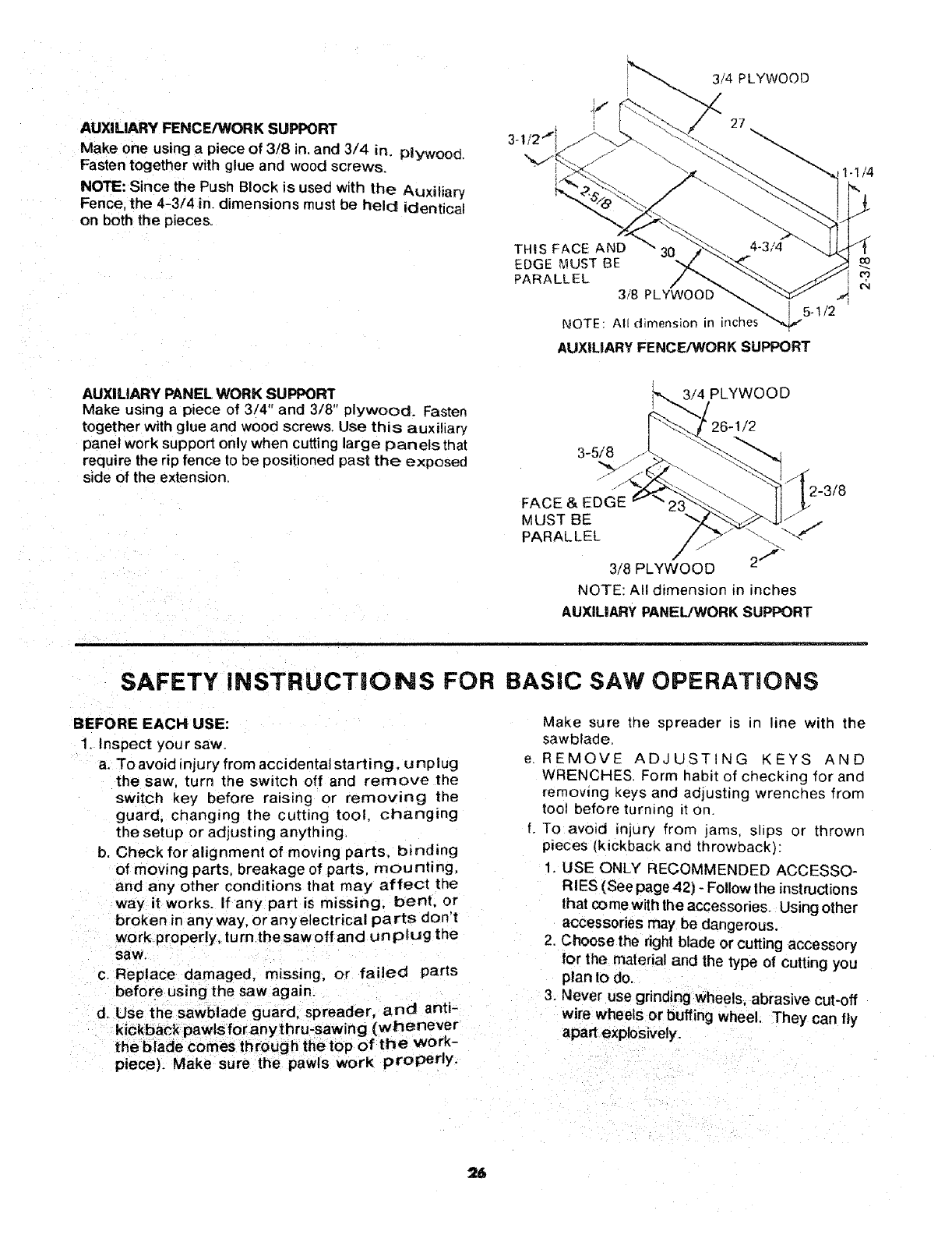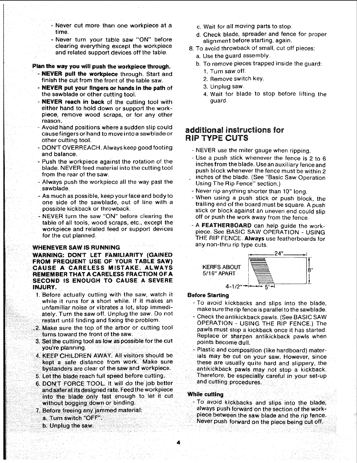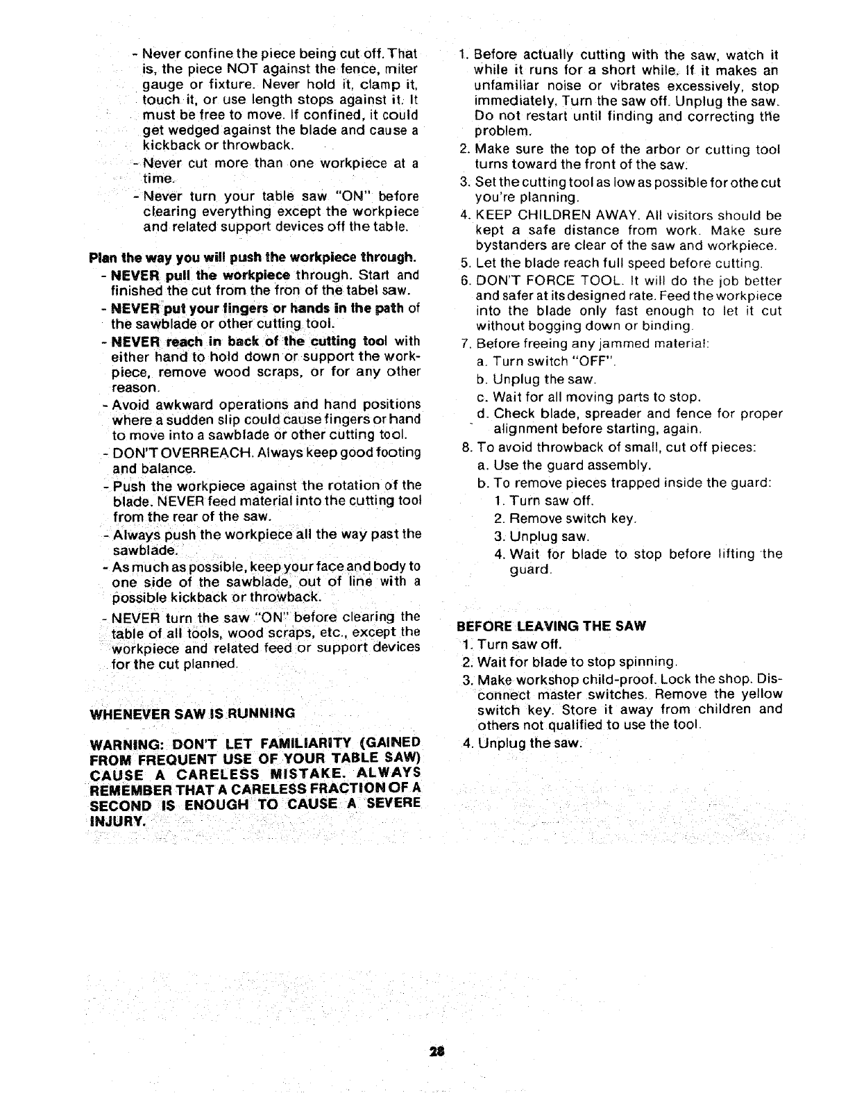 SAFETY INSTRUCTIONS FOR TASLE SAW