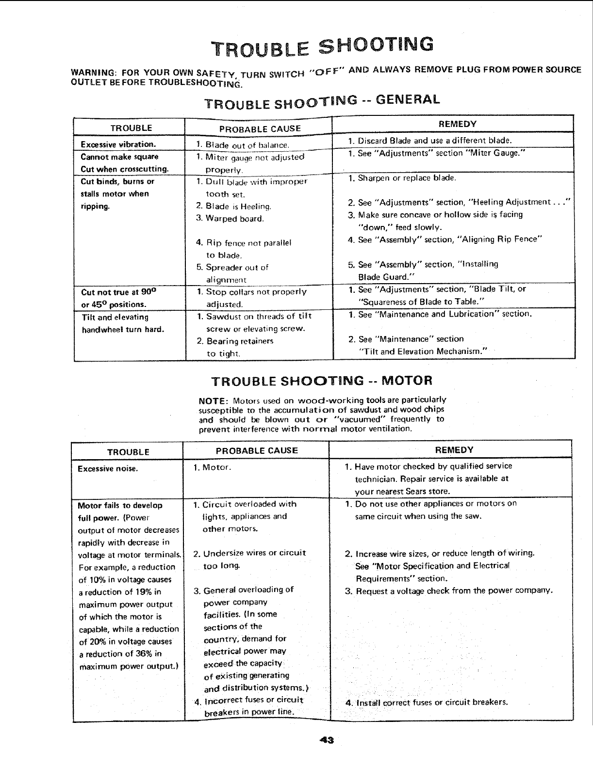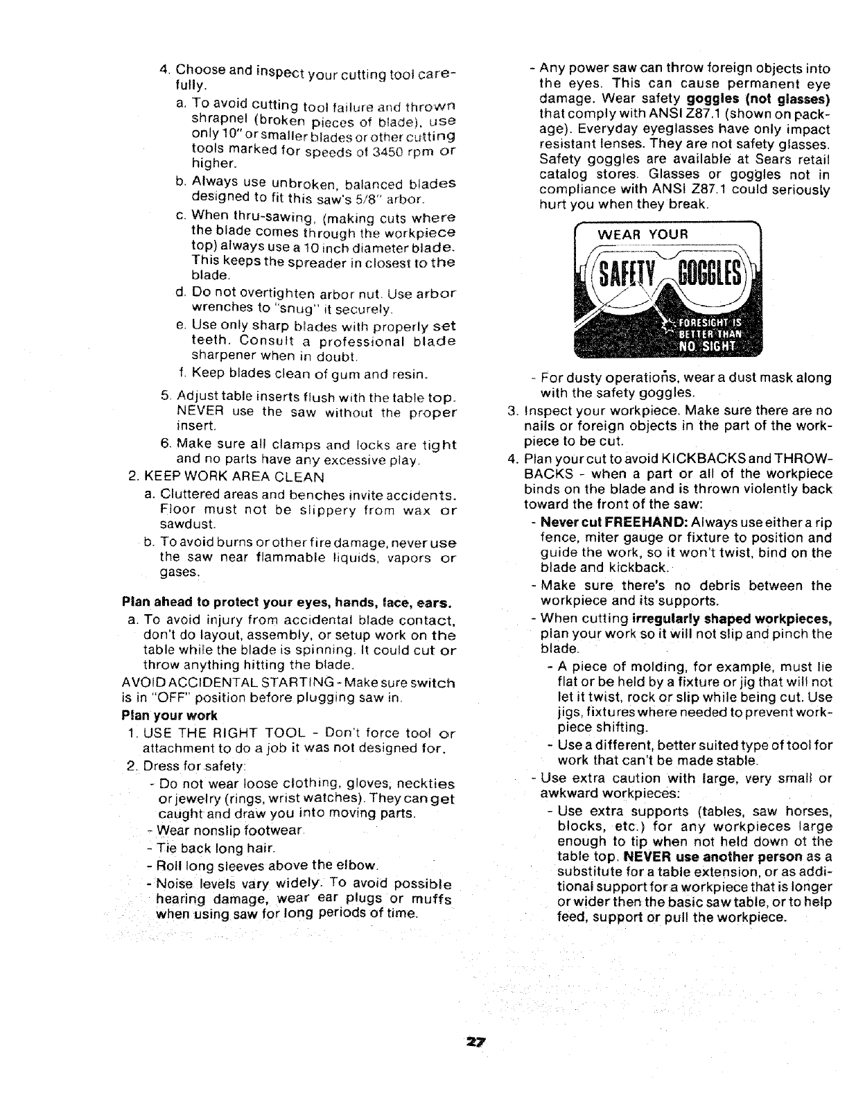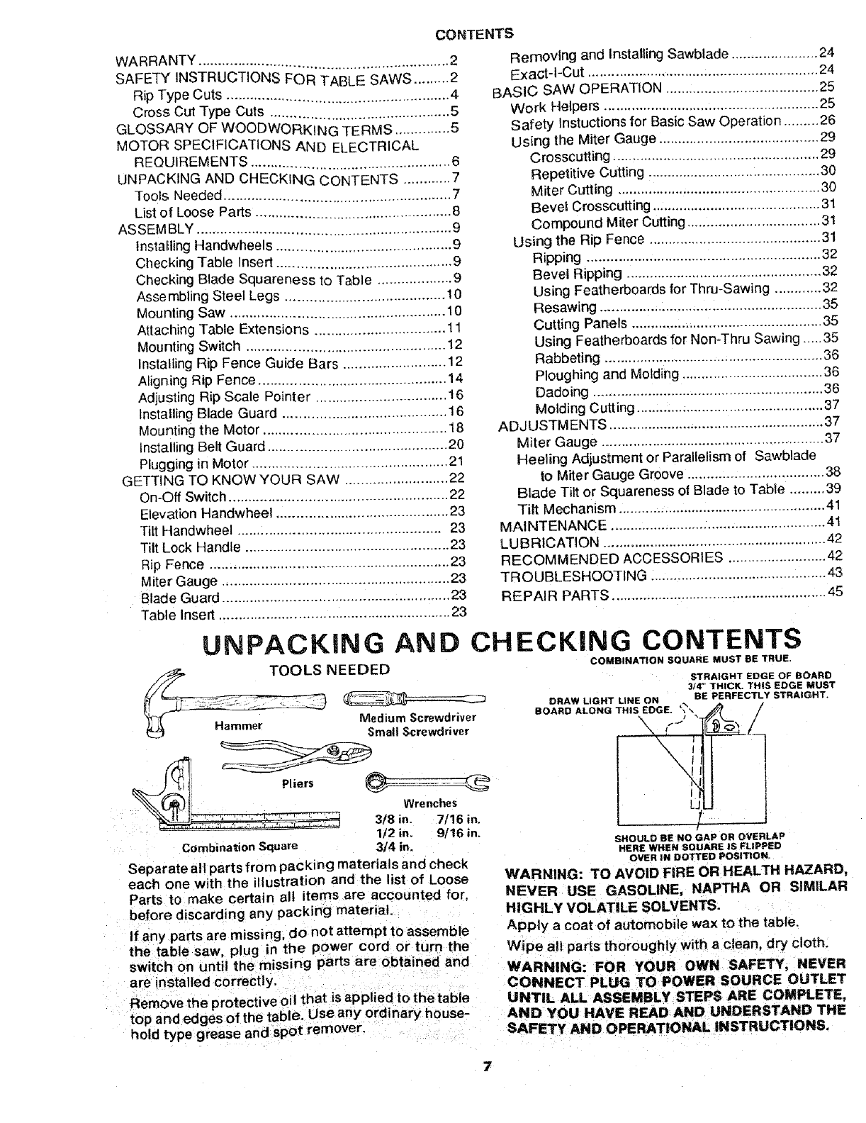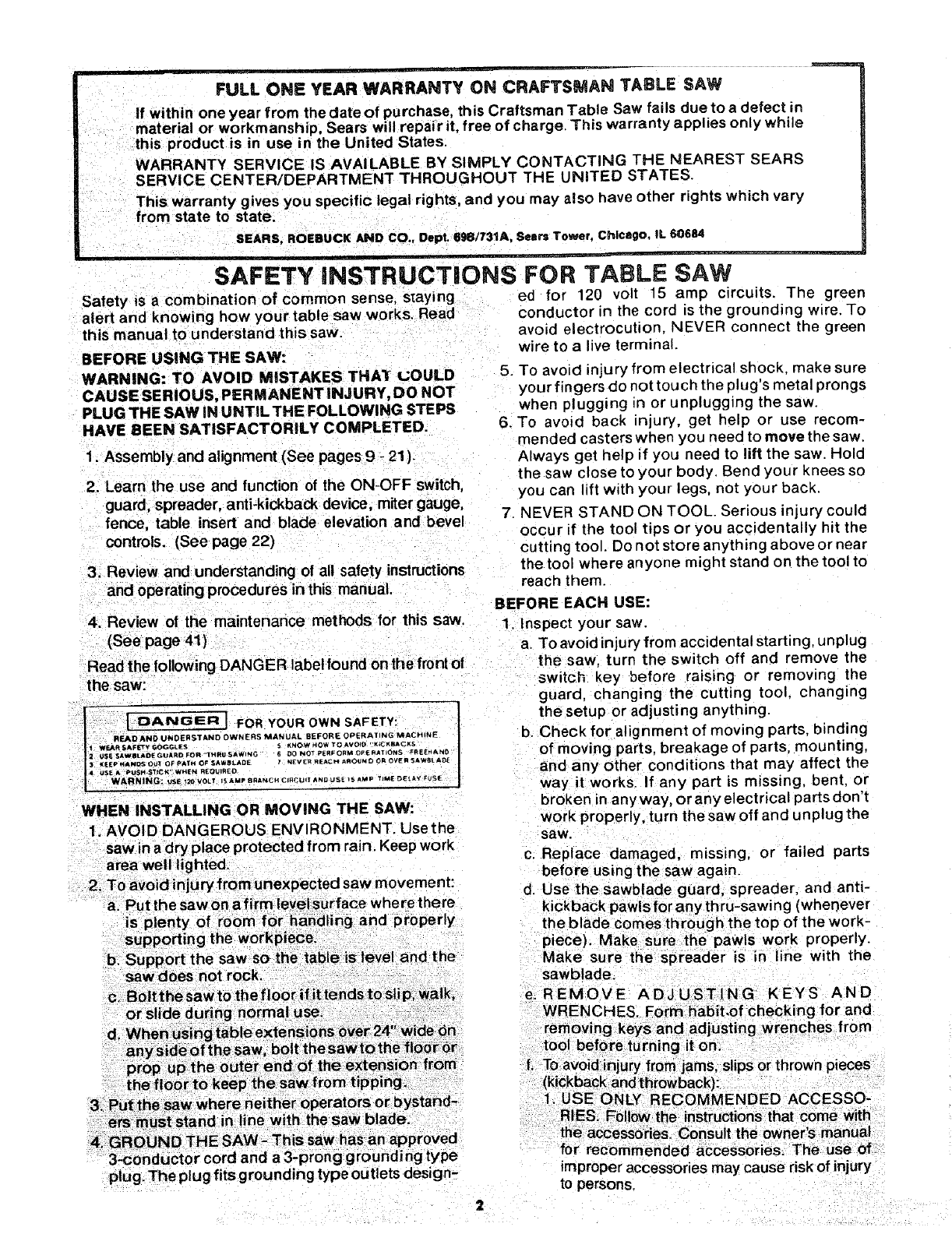 FULL ONE YEAR 'WARRANTY ON CRAFTSMAN TABLE SAW