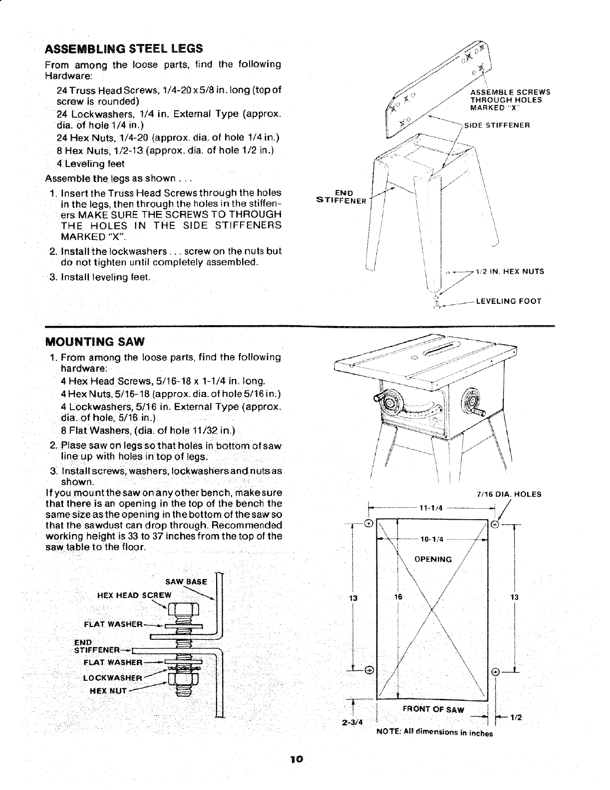HARDWARE FOR ATTACHING LEGS TO SAW.