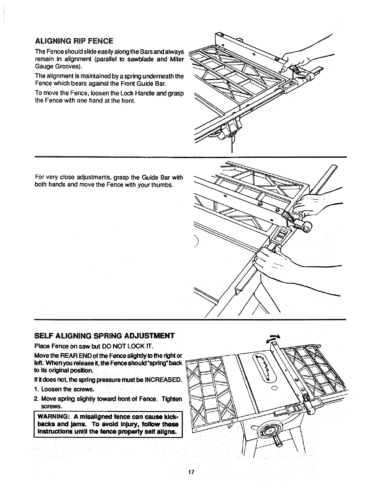 auxiliaw fence wherl fence _s set to stop before adjusting or