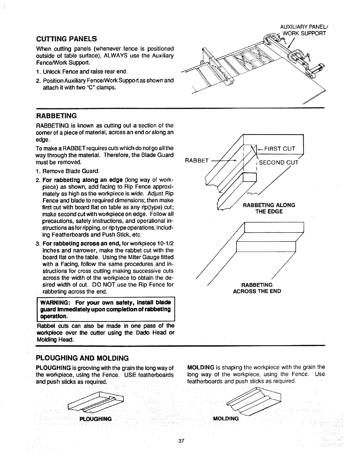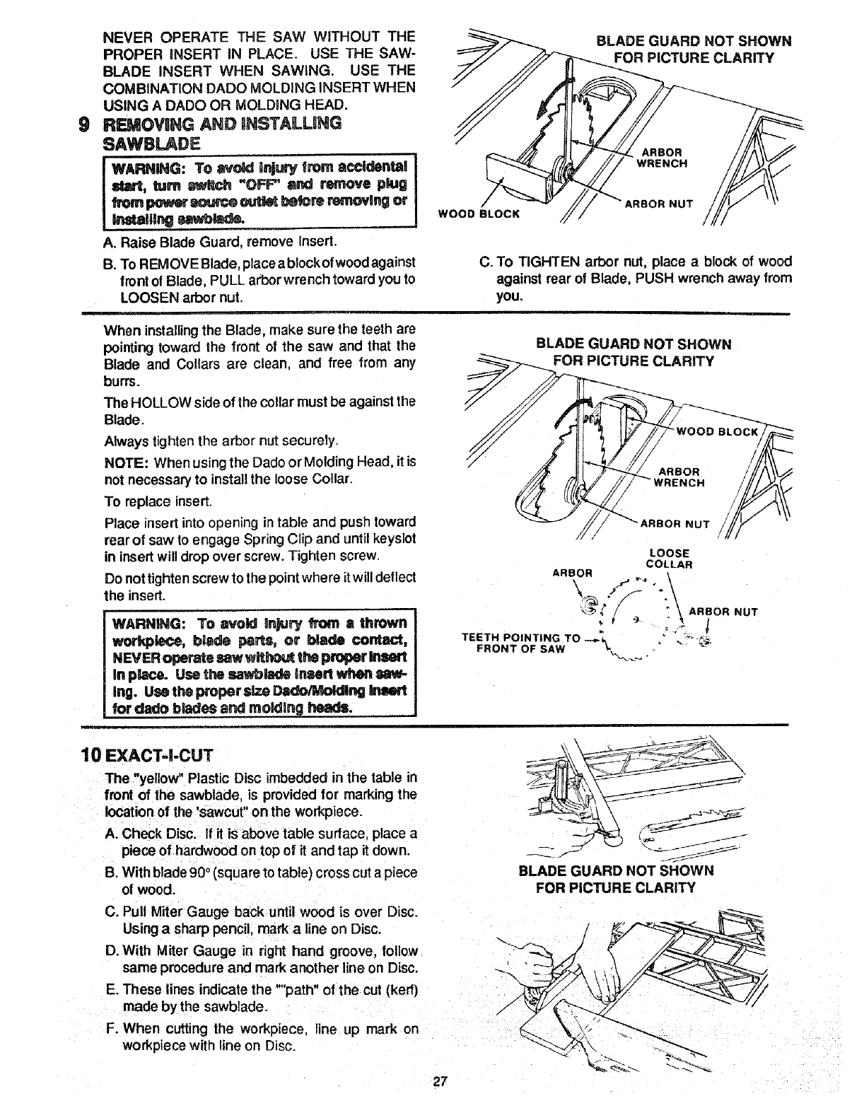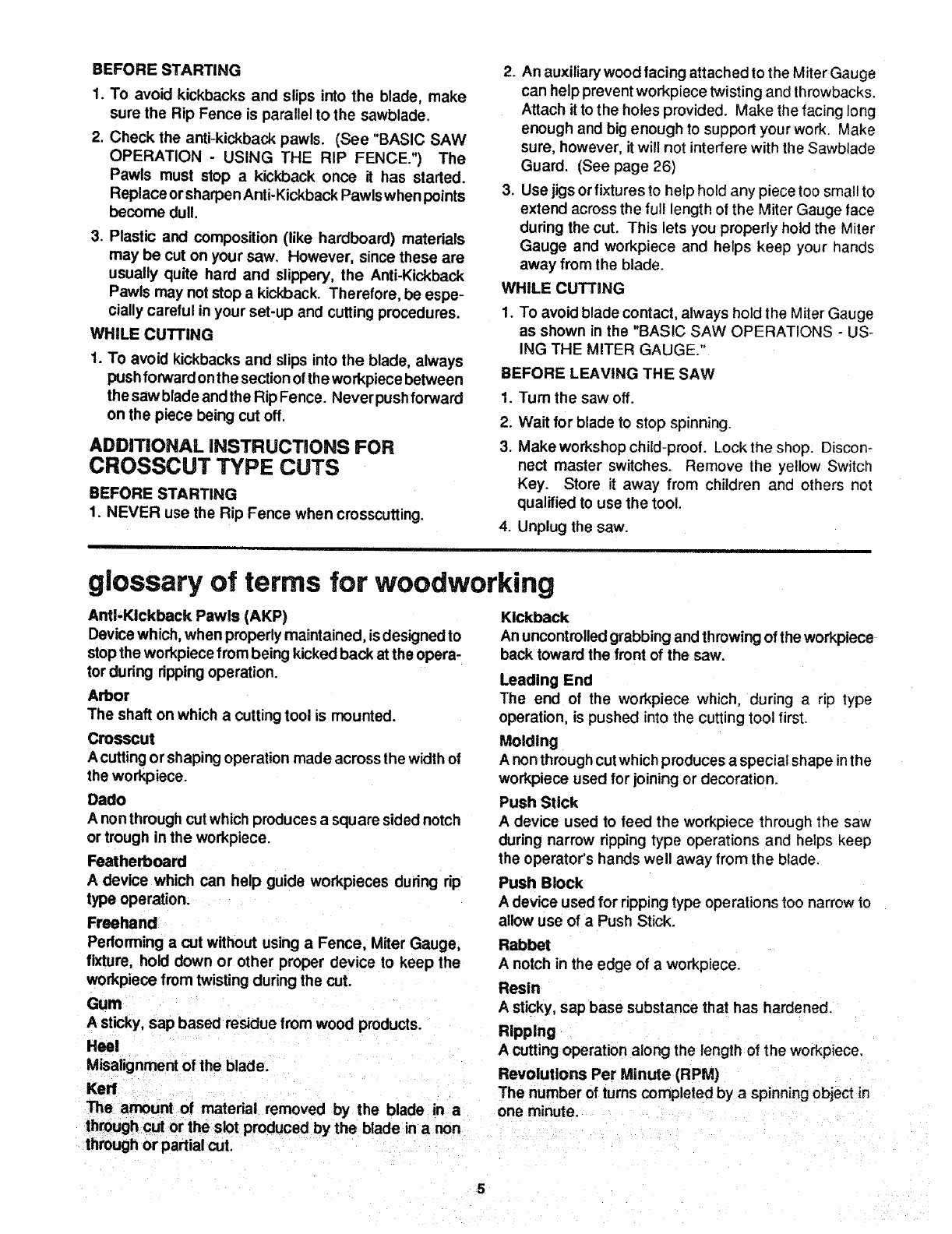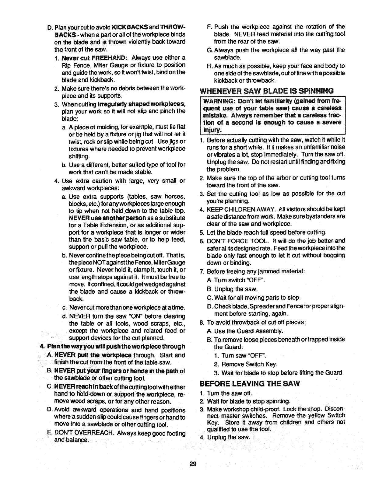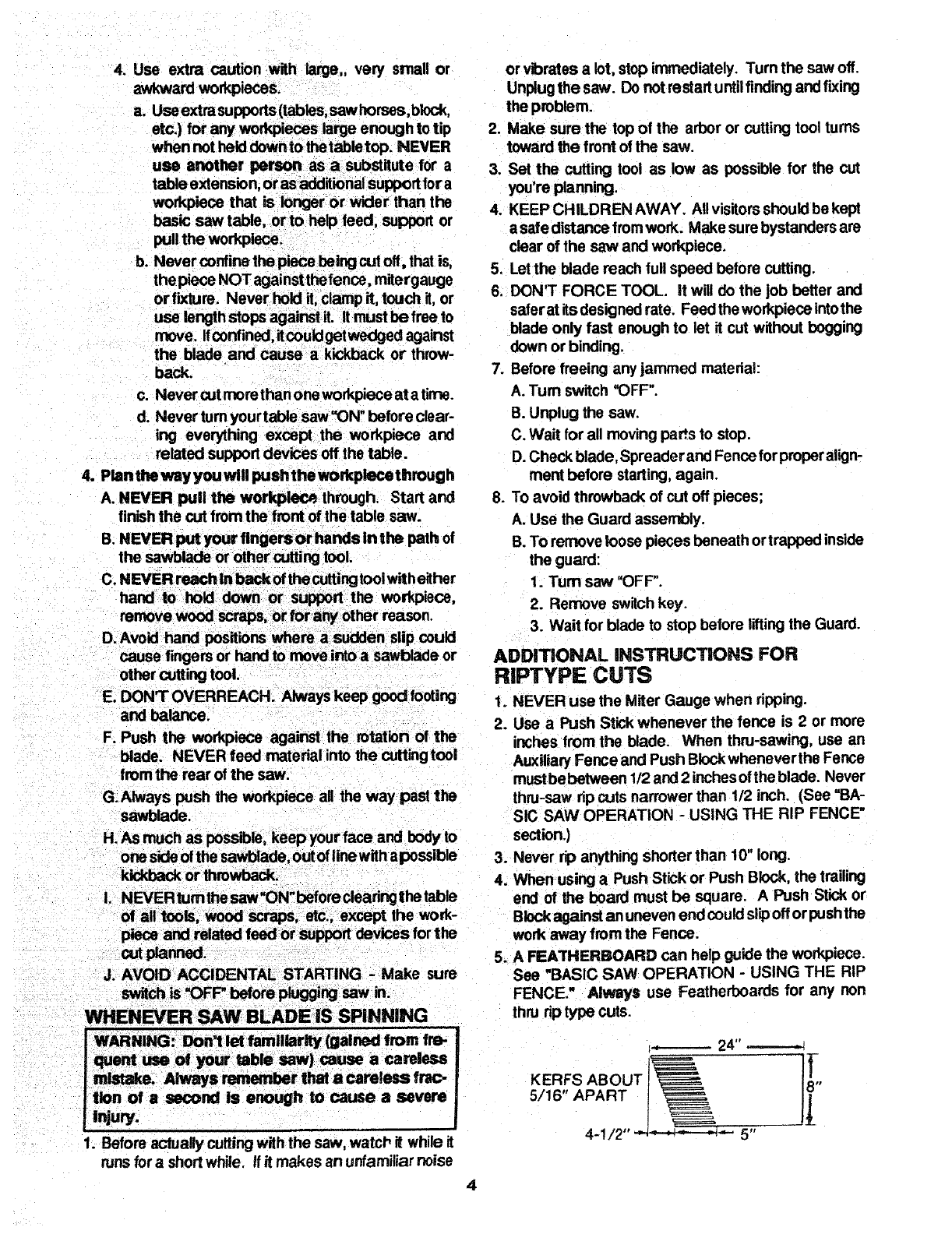 9. When riPPing, use push blOCk and 10. Turn _0owex off and walt fo_ blade