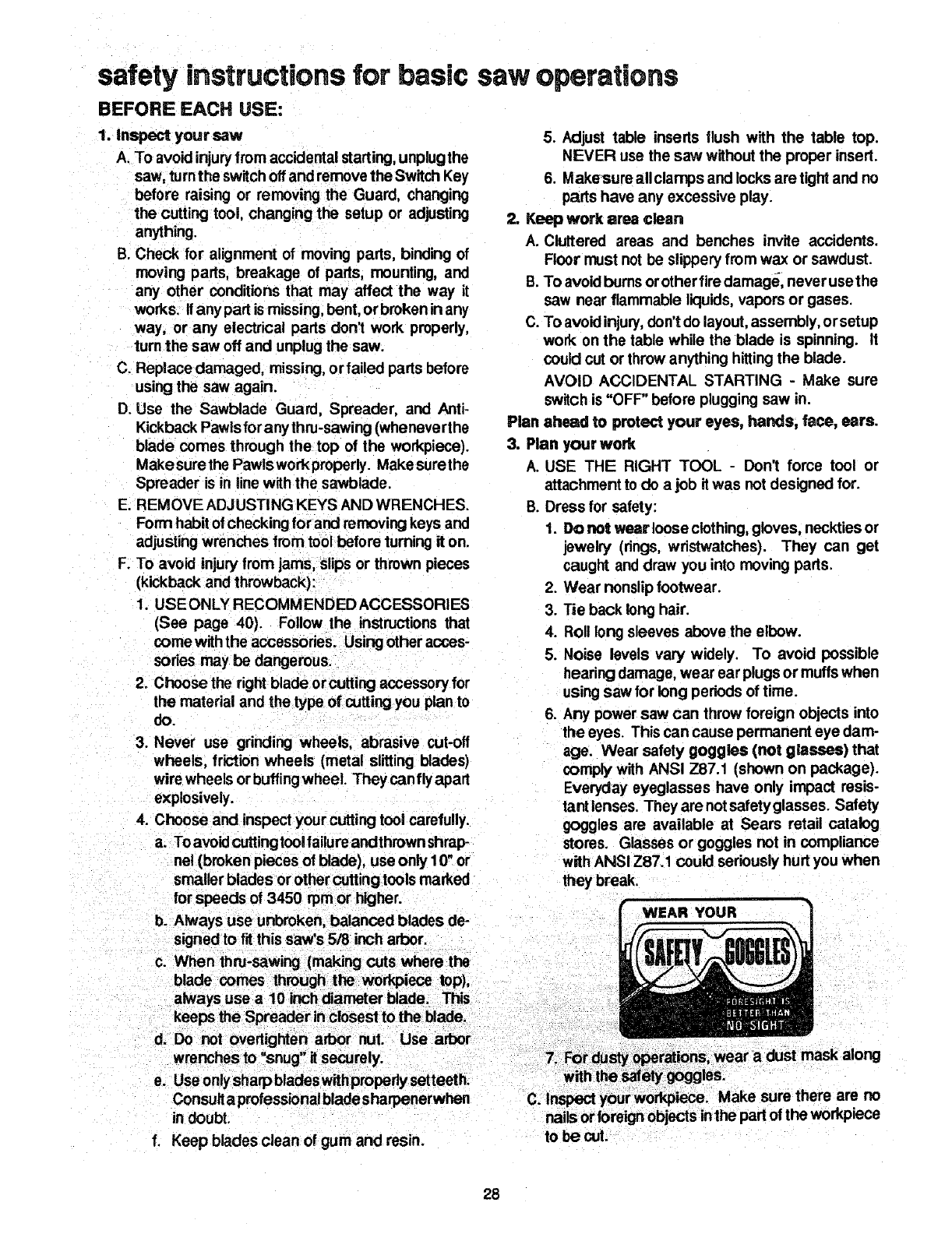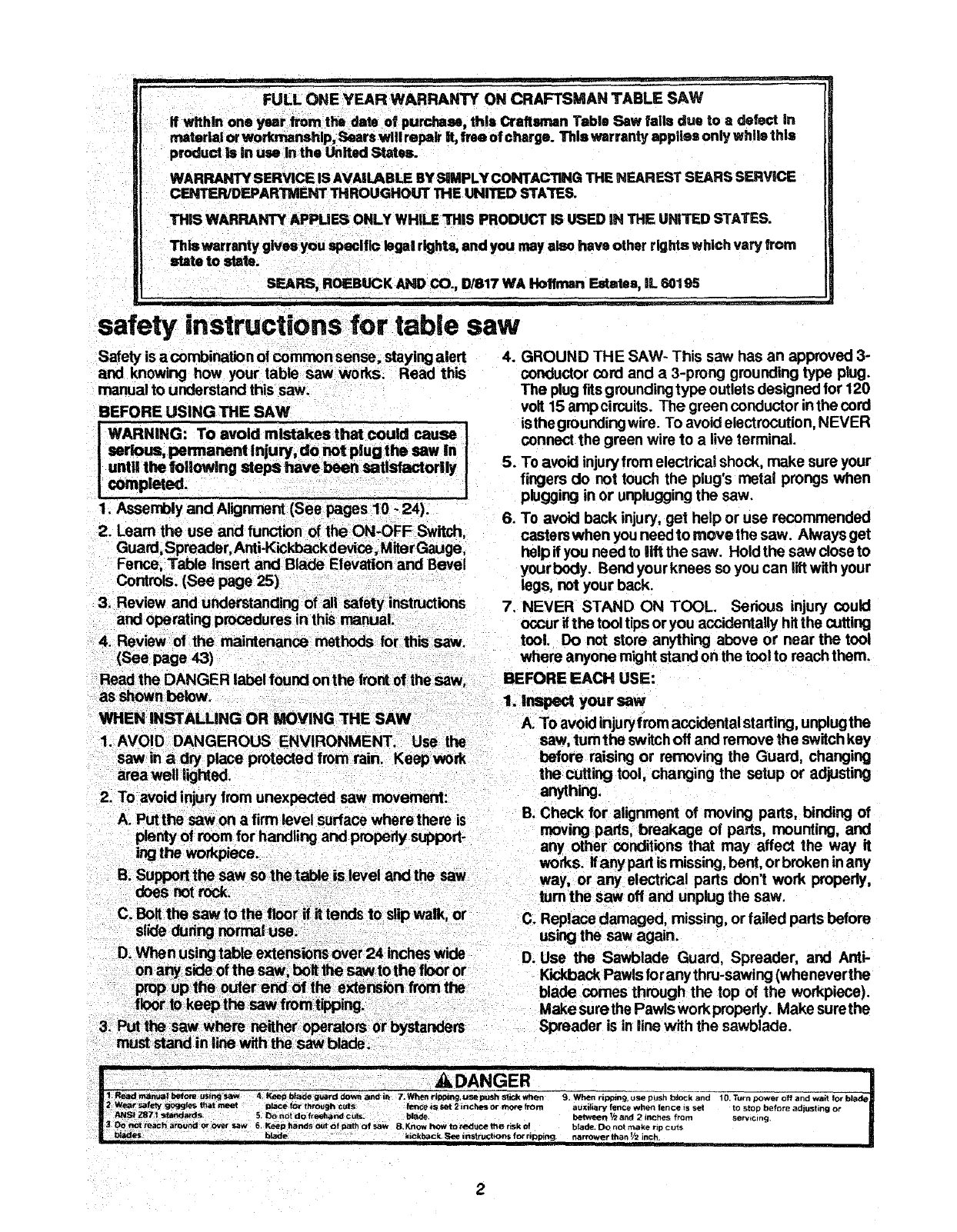 FULLONEYEARWARRANTYONCRAFTSMANTABLESAW