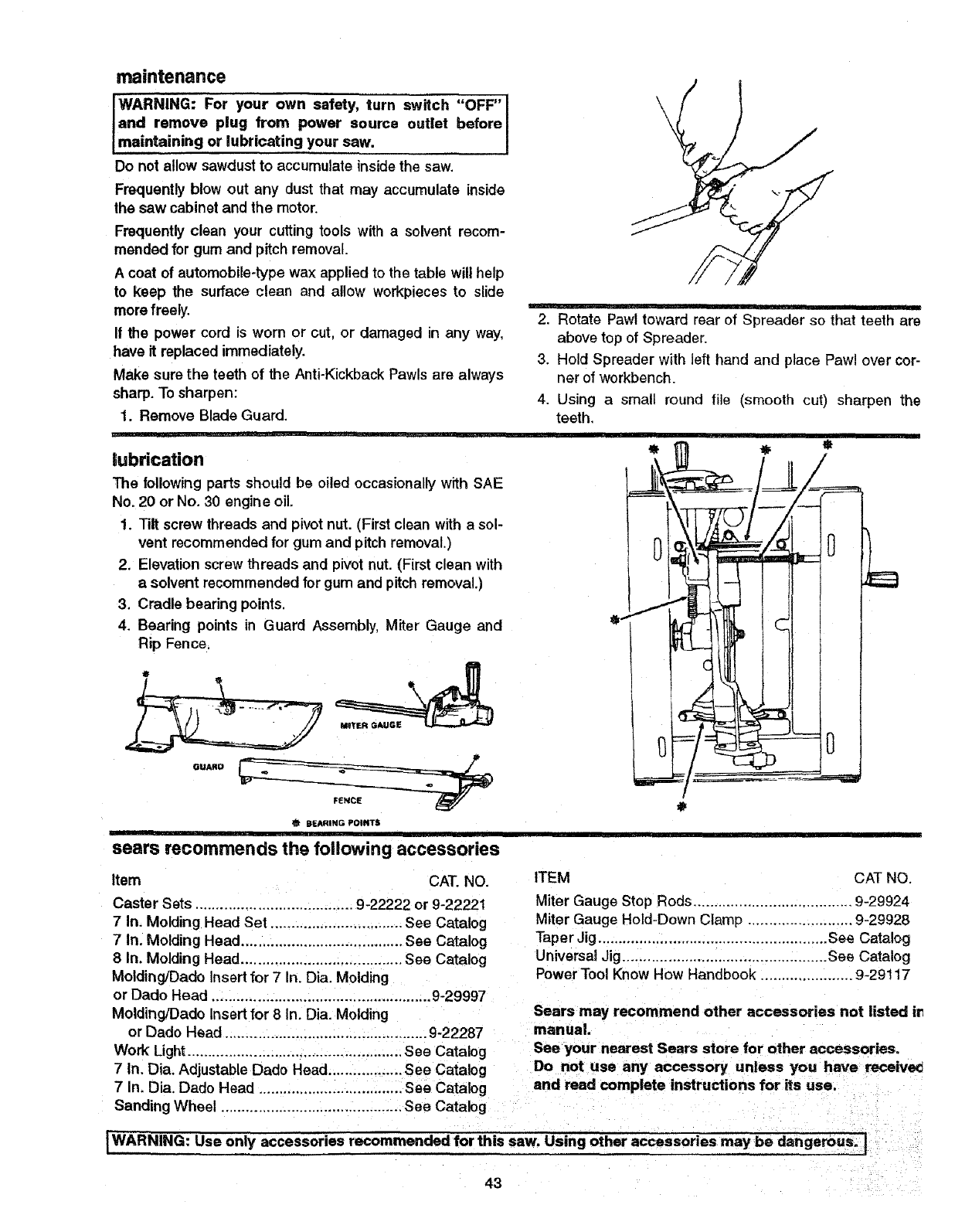 4. Review of the maintenance methods for this saw. tool. Do not store anything above or near the tool