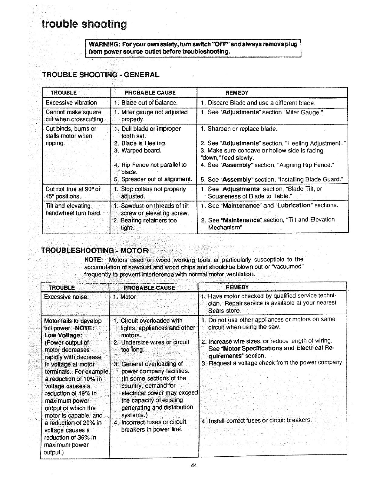 Craftsman 113298722 User Manual 10 TABLE SAW Manuals And Guides L0806063