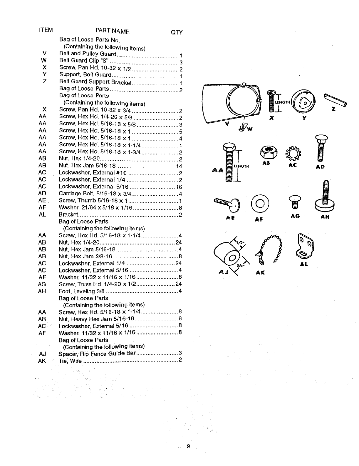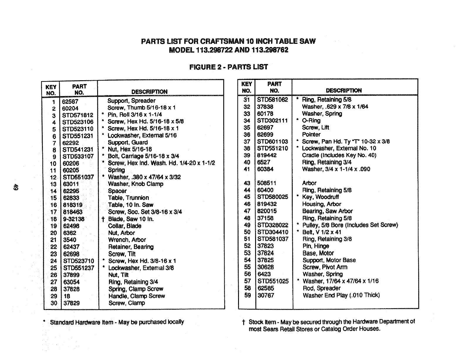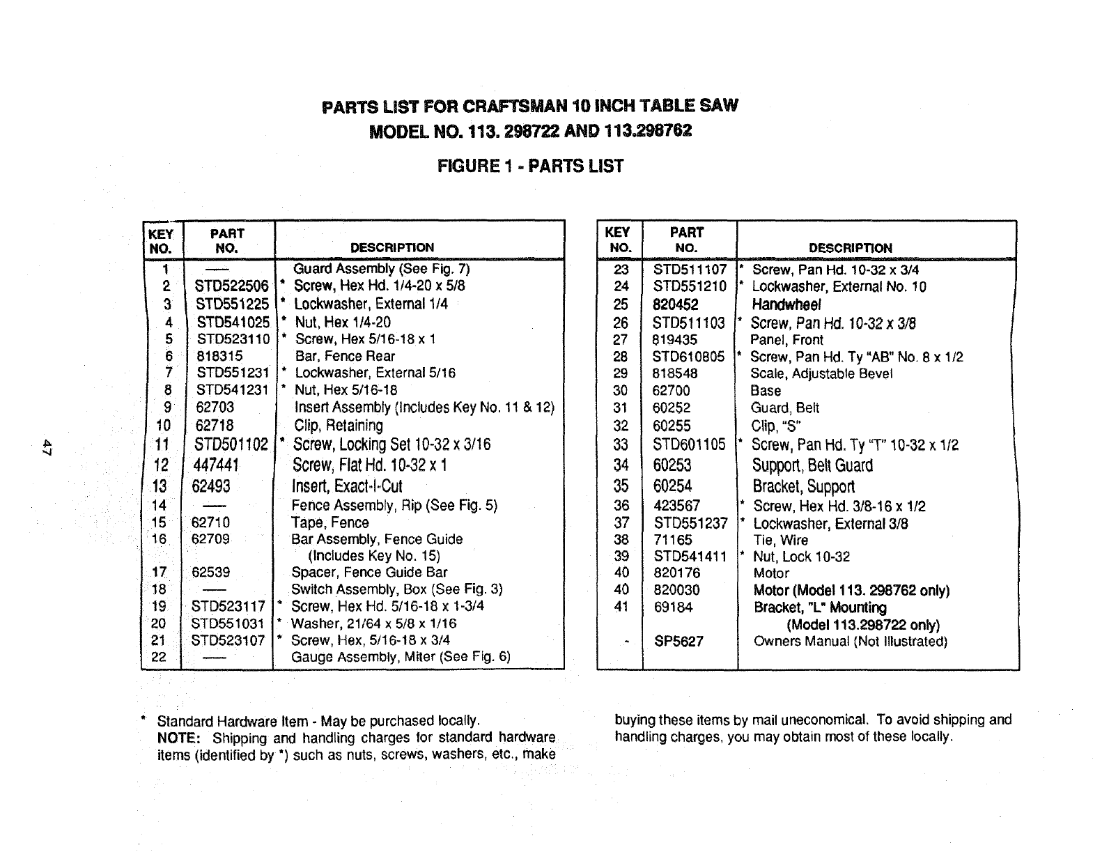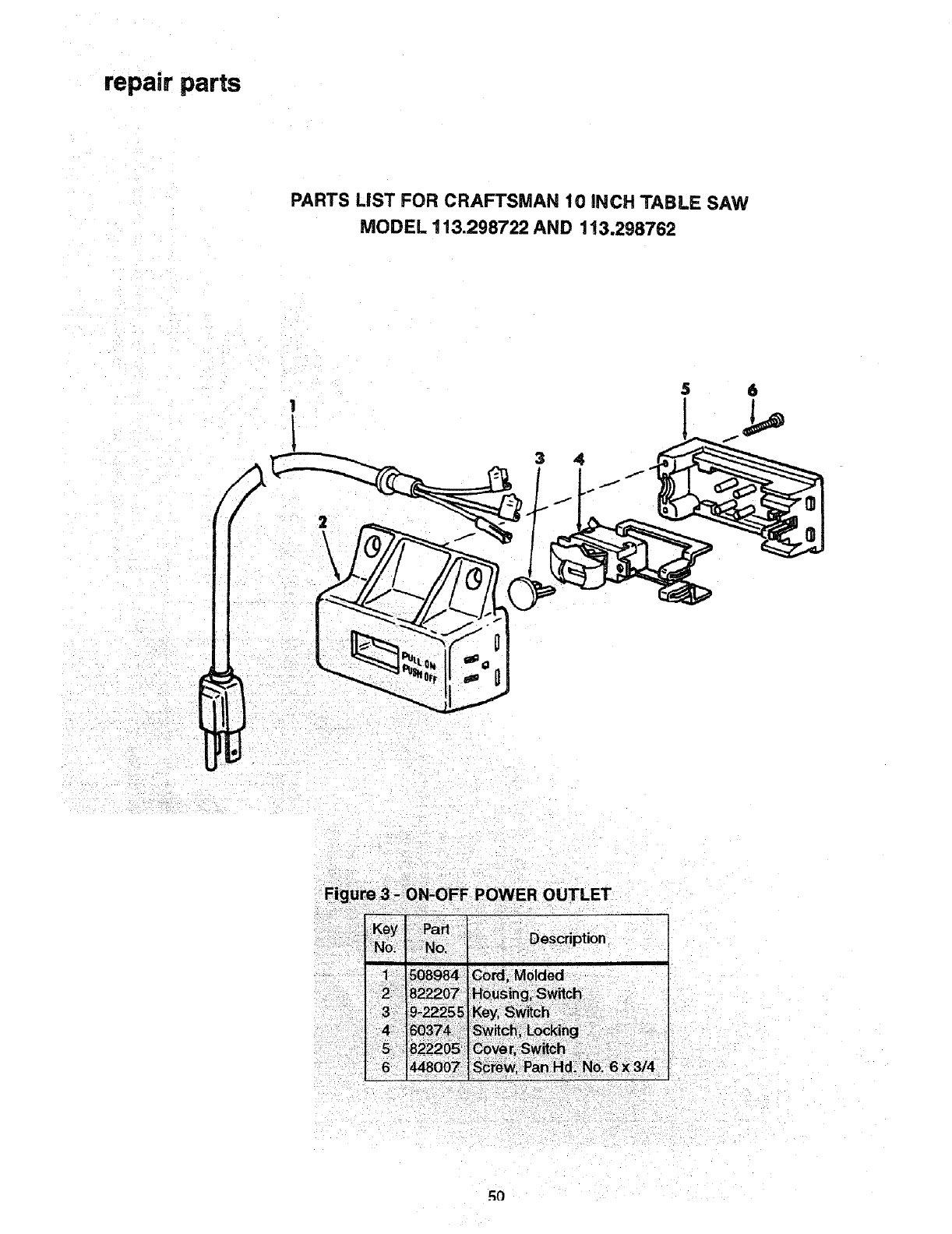 PAR'IS LiST FOR CRAF3SMAN 10 INCH TABLE SAW