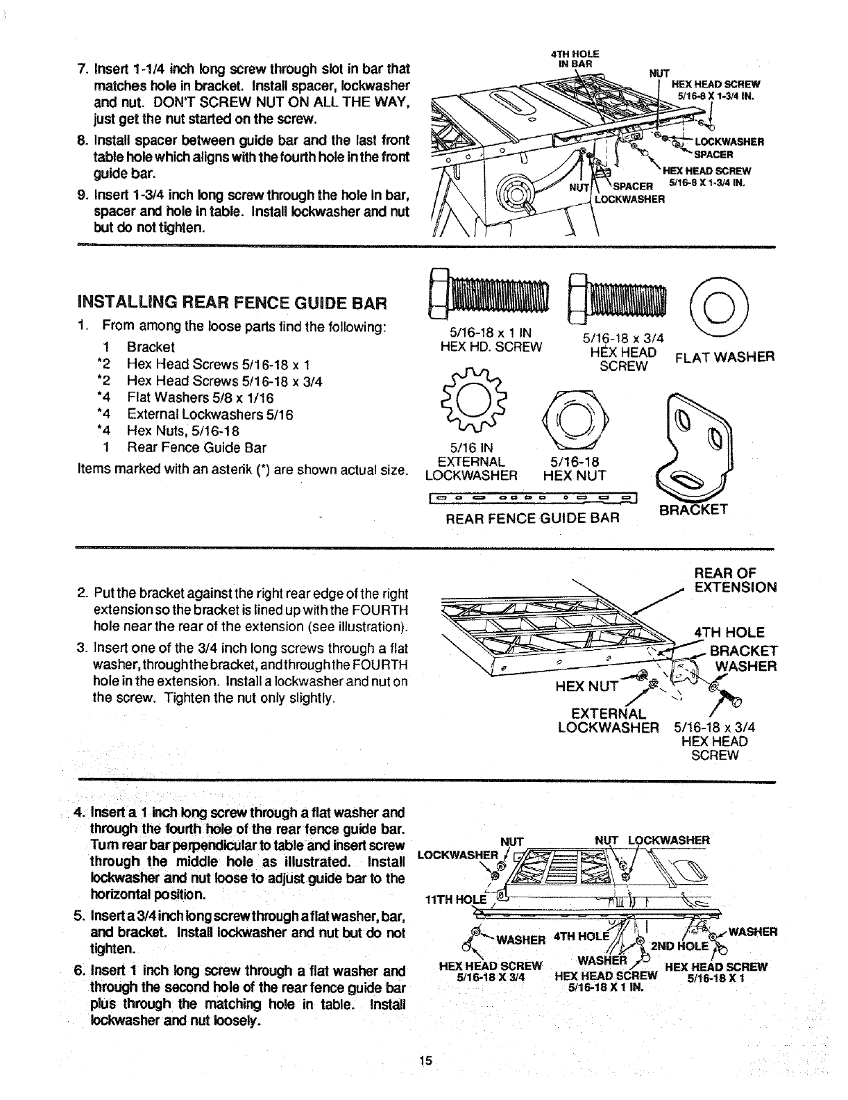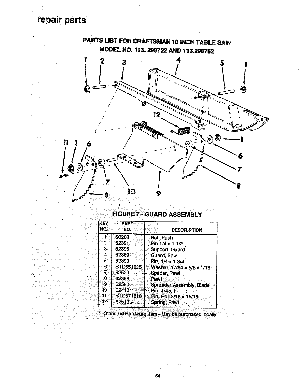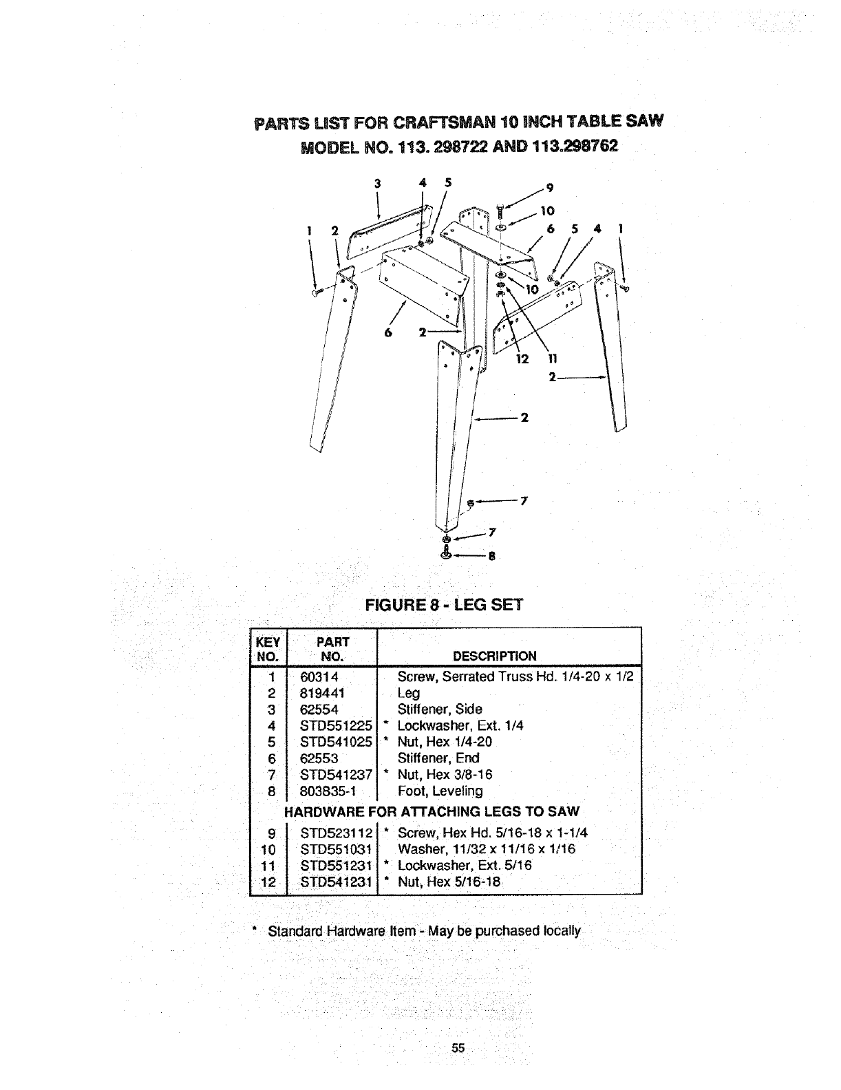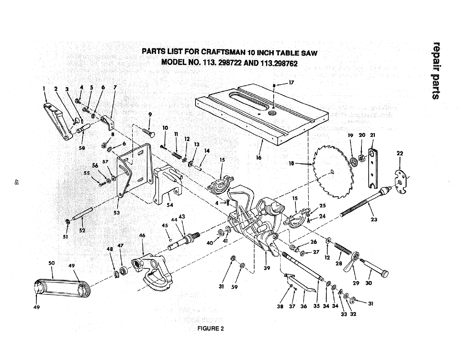 PAR'IS LiST FOR CRAF3SMAN 10 INCH TABLE SAW