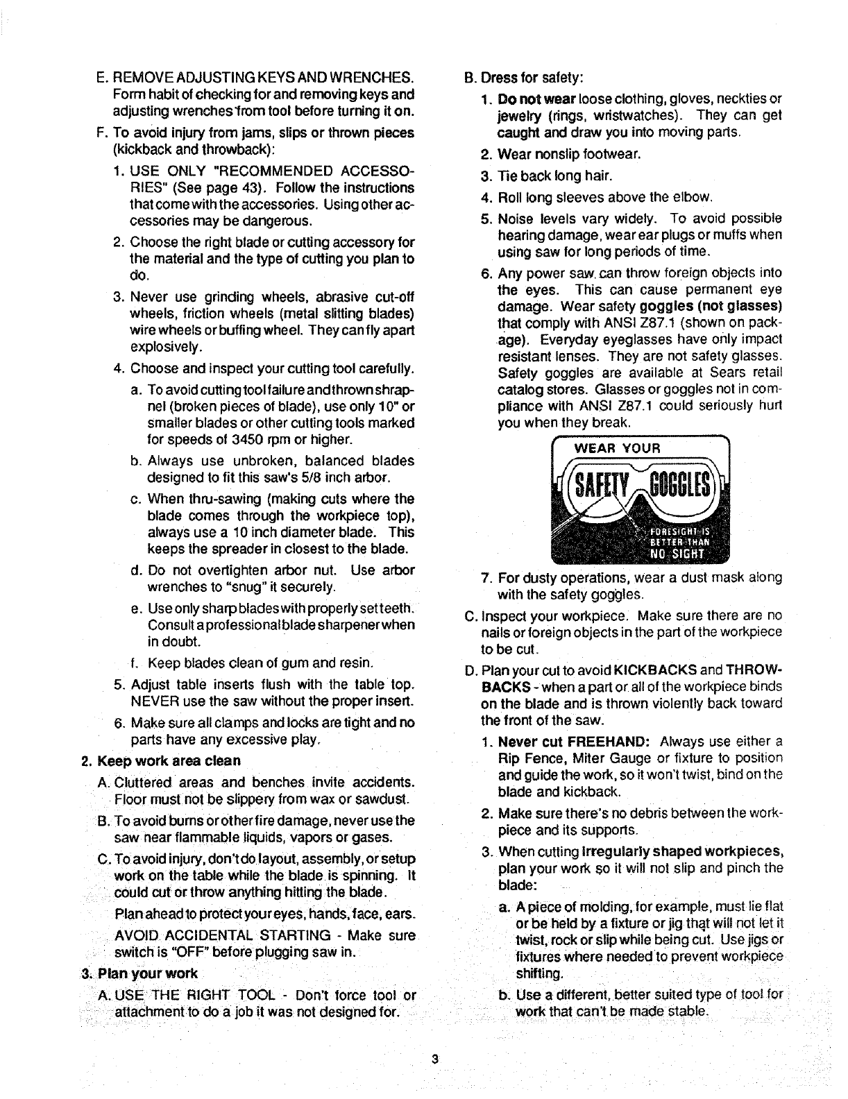 E3. _notDotrot macfi around Or over saw 6. Keep hands out of path of saw 8. Know how to reduce the risk af