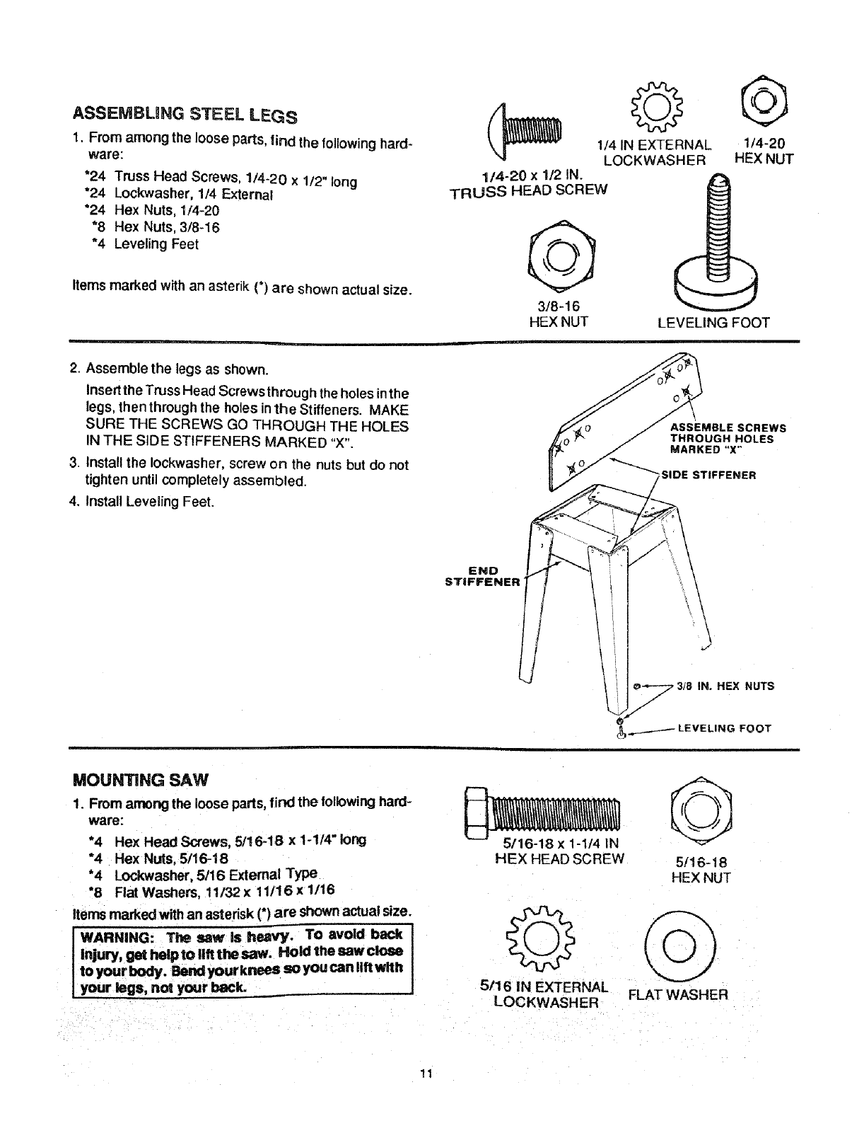 HARDWARE FOR ATrACHING LEGS TO SAW