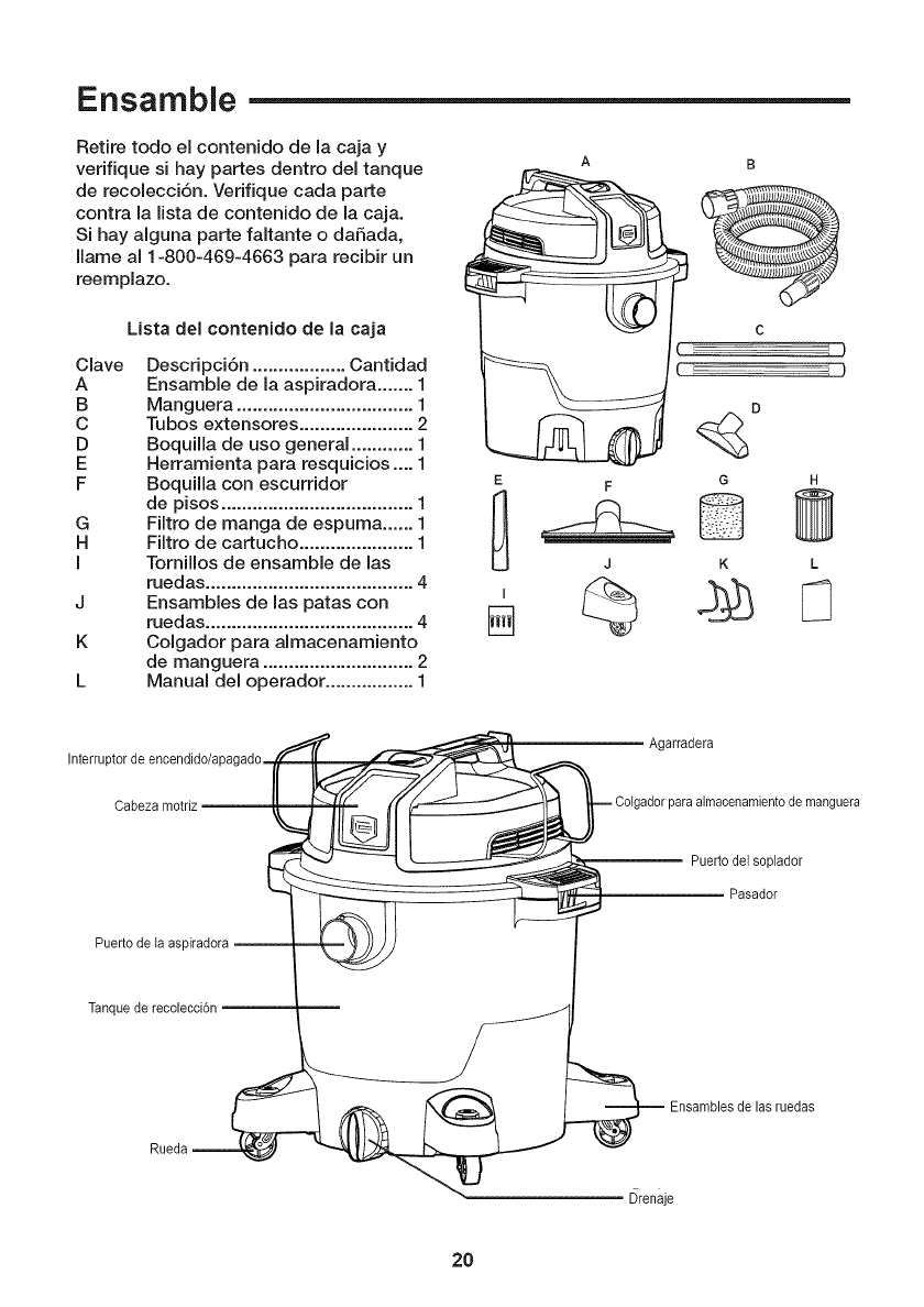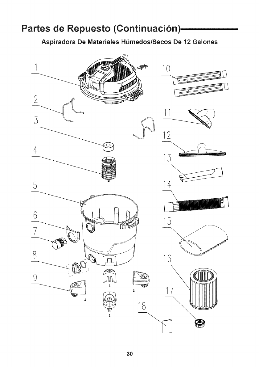 encuentra en la aspiradora. Para ordenar partes, Ilame al 1-800-469=4663.