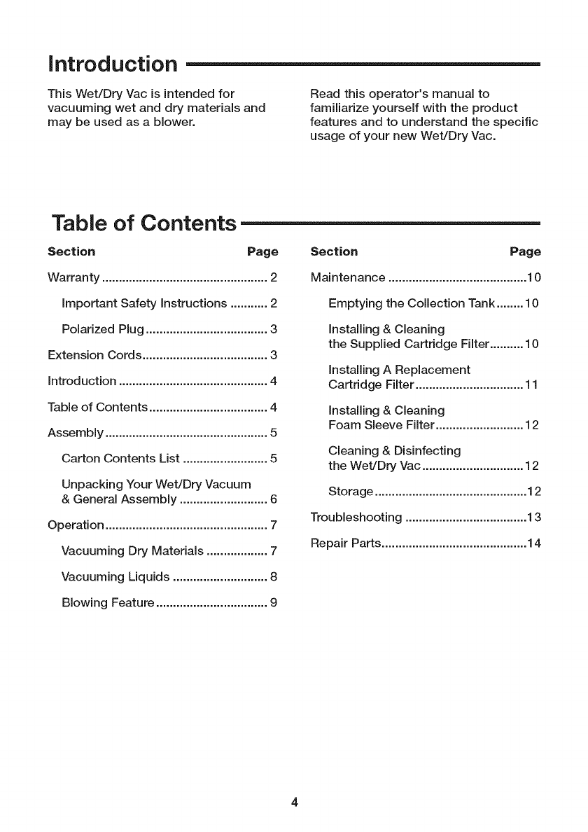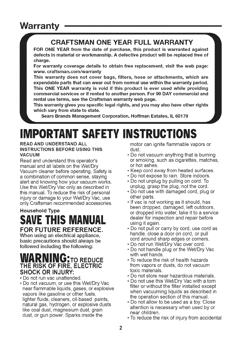 Craftsman 12512006 User Manual WET/DRY VACUUM Manuals And Guides 1311290L
