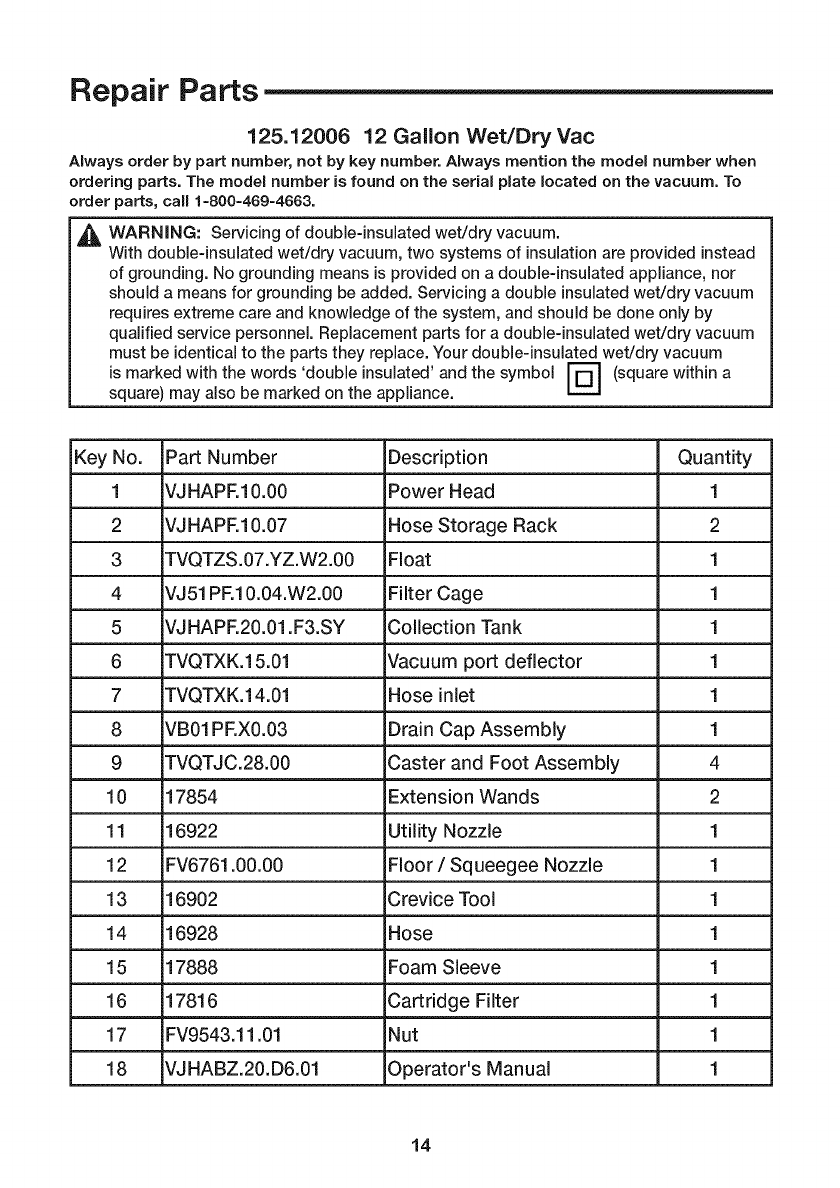 User Manual: Craftsman 12512006 12512006 CRAFTSMAN WET/DRY VACUUM - Manuals and Guides View the owners manual for your CRAFTSMAN WET/DRY VACUUM #12512006. Home:Vacuums & Floor Care Parts:Craftsman Parts:Craftsman WET/DRY VACUUM Manual