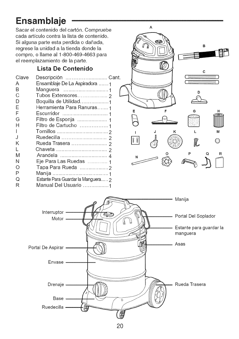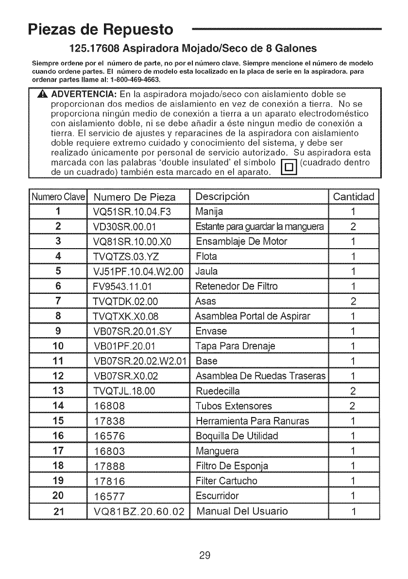 cuando ordene partes. El nQrnero de rnodelo esta Iocalizado en la placa de serie en la aspiradora, para