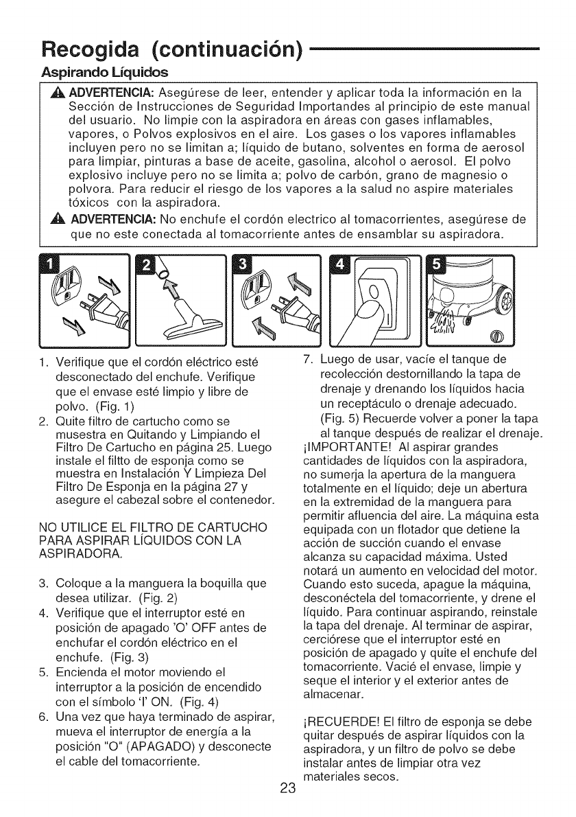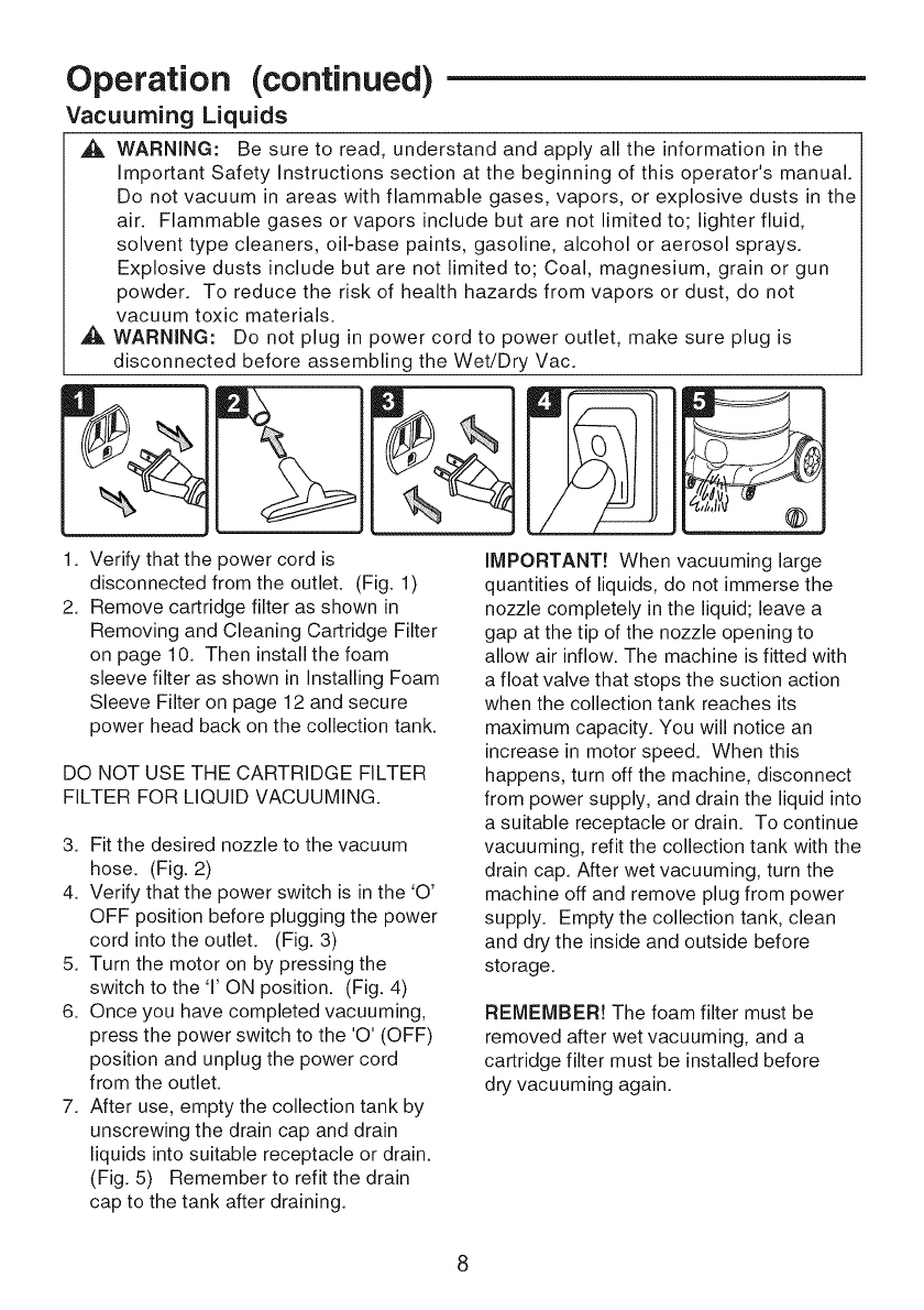 when vacuuming liquids as described in