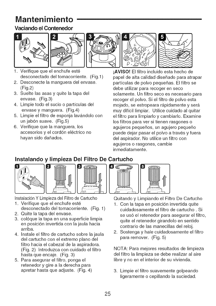 1) El filtro de cartucho no esta