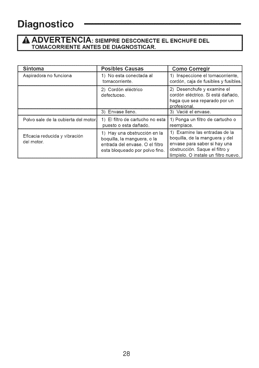 realizado L'micamente por personal de servicio autorizado. Su aspiradora esta