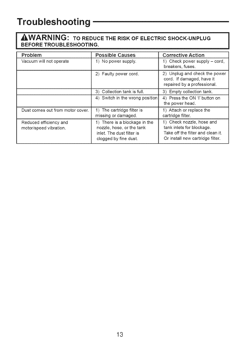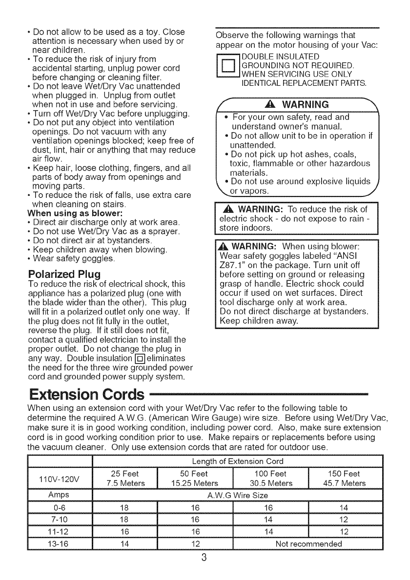 •Do not vacuum, or use this Wet/Dry Vac