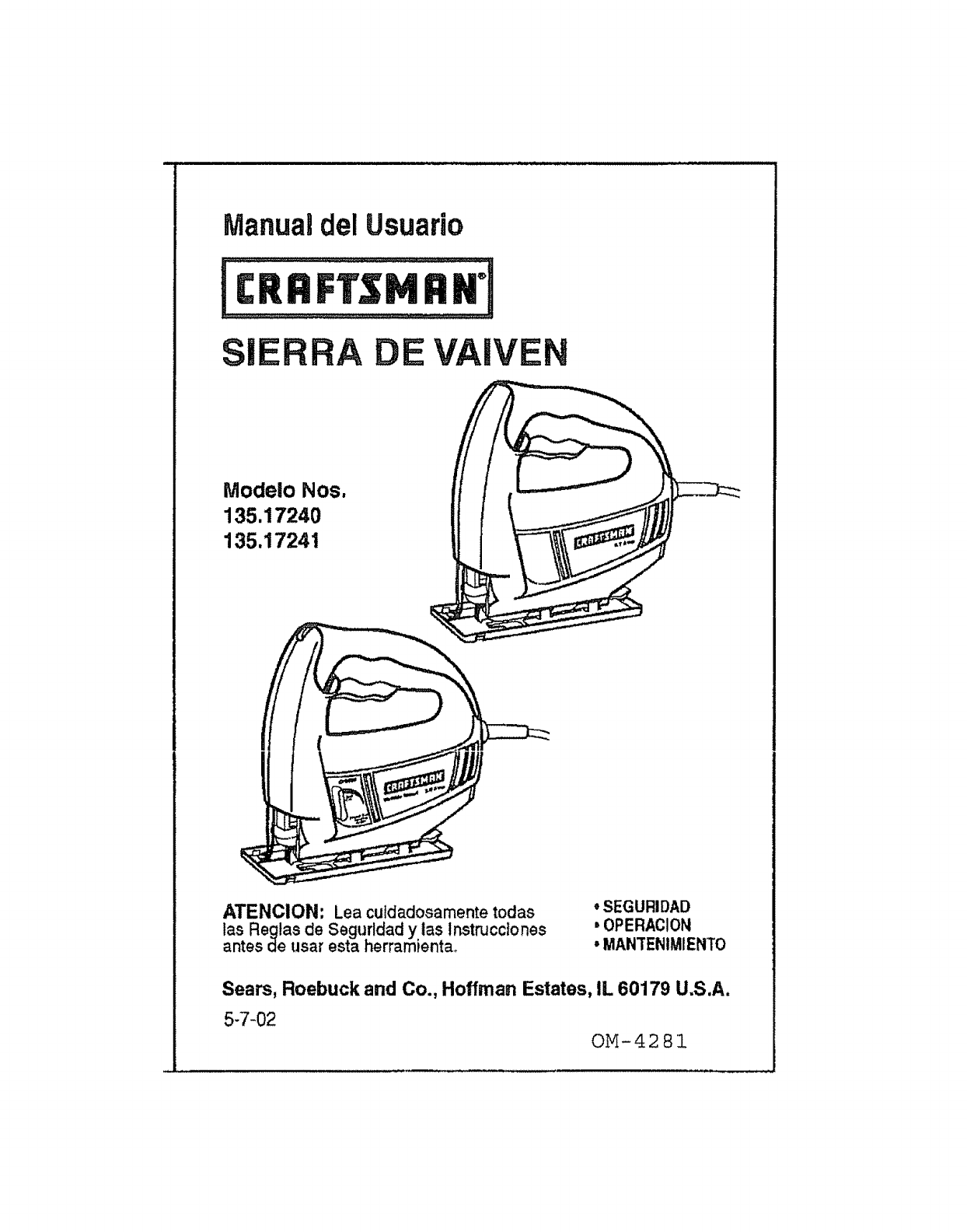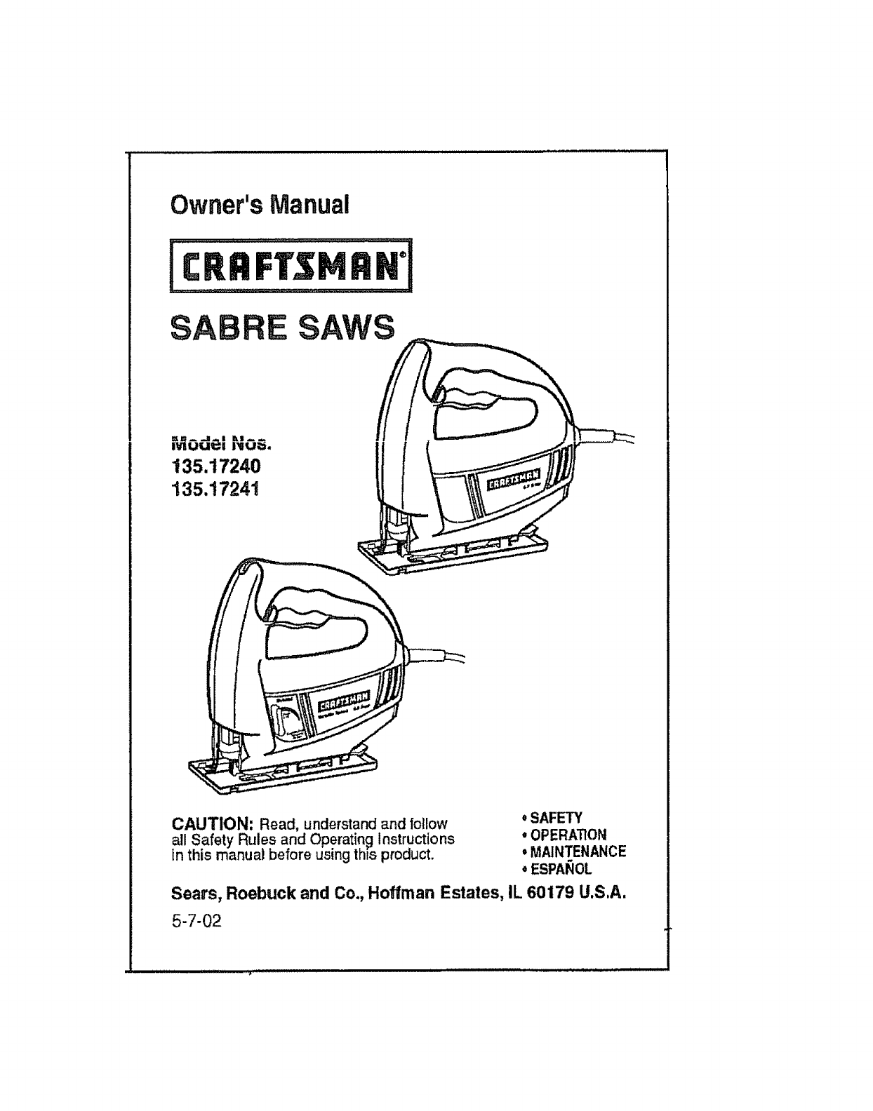 User Manual: Craftsman 13517240 13517240 CRAFTSMAN SABRE SAW - Manuals and Guides View the owners manual for your CRAFTSMAN SABRE SAW #13517240. Home:Tool Parts:Craftsman Parts:Craftsman SABRE SAW Manual