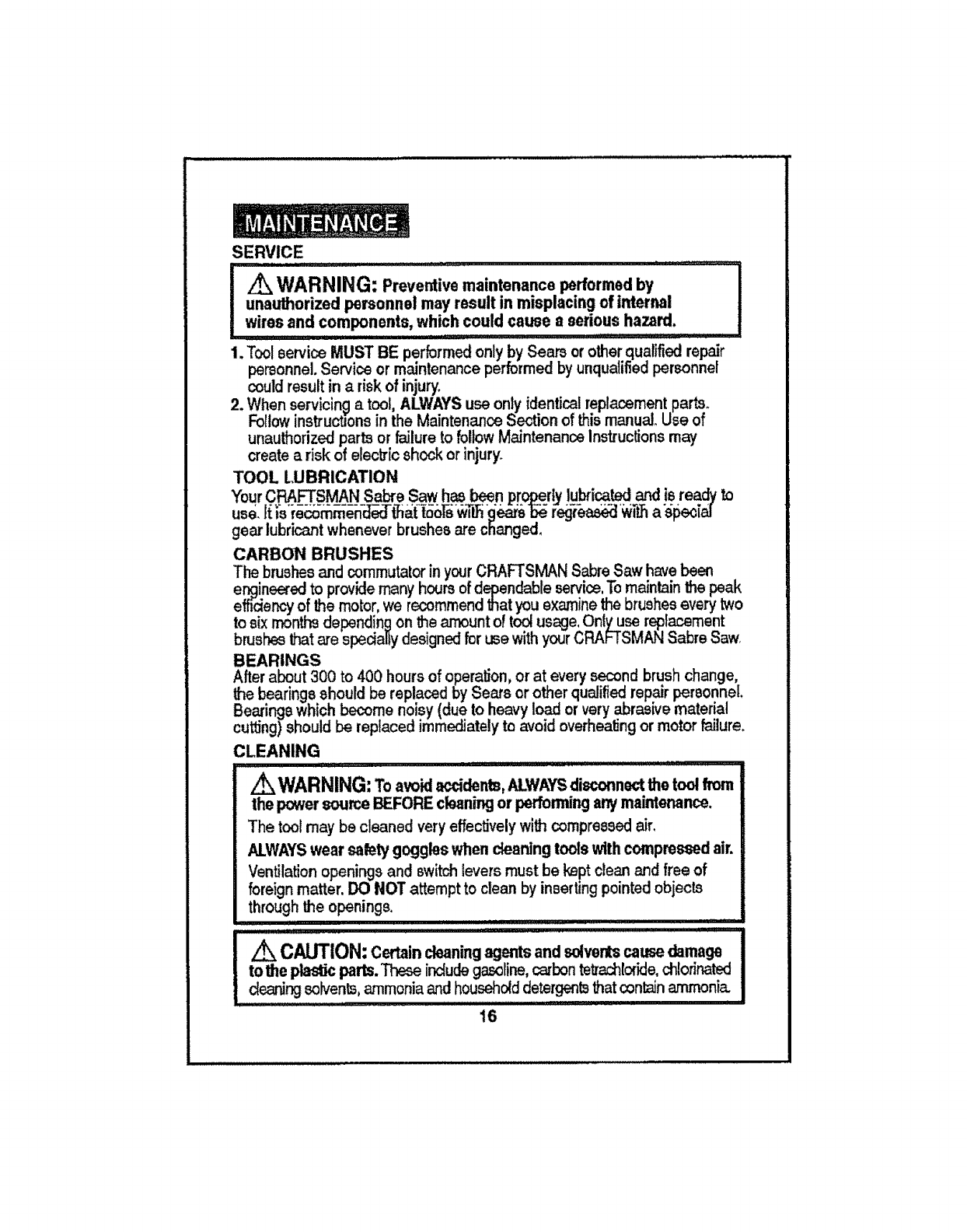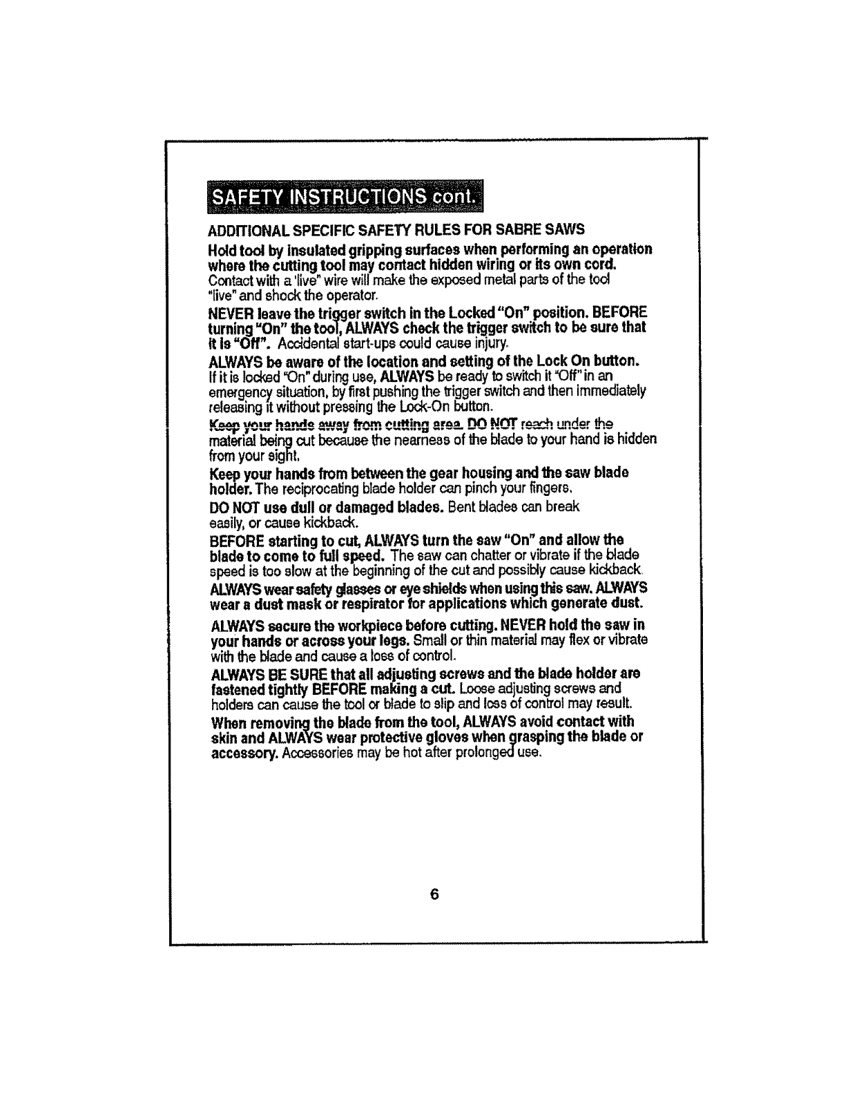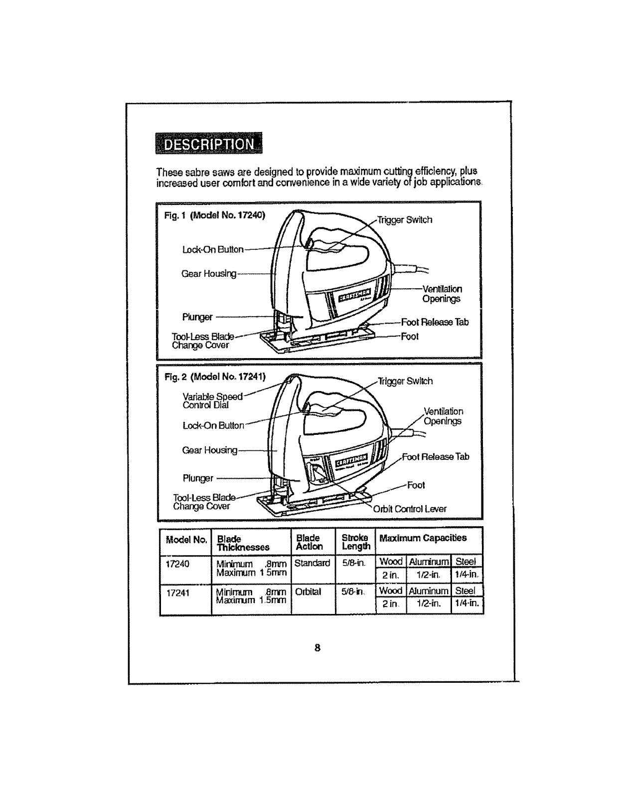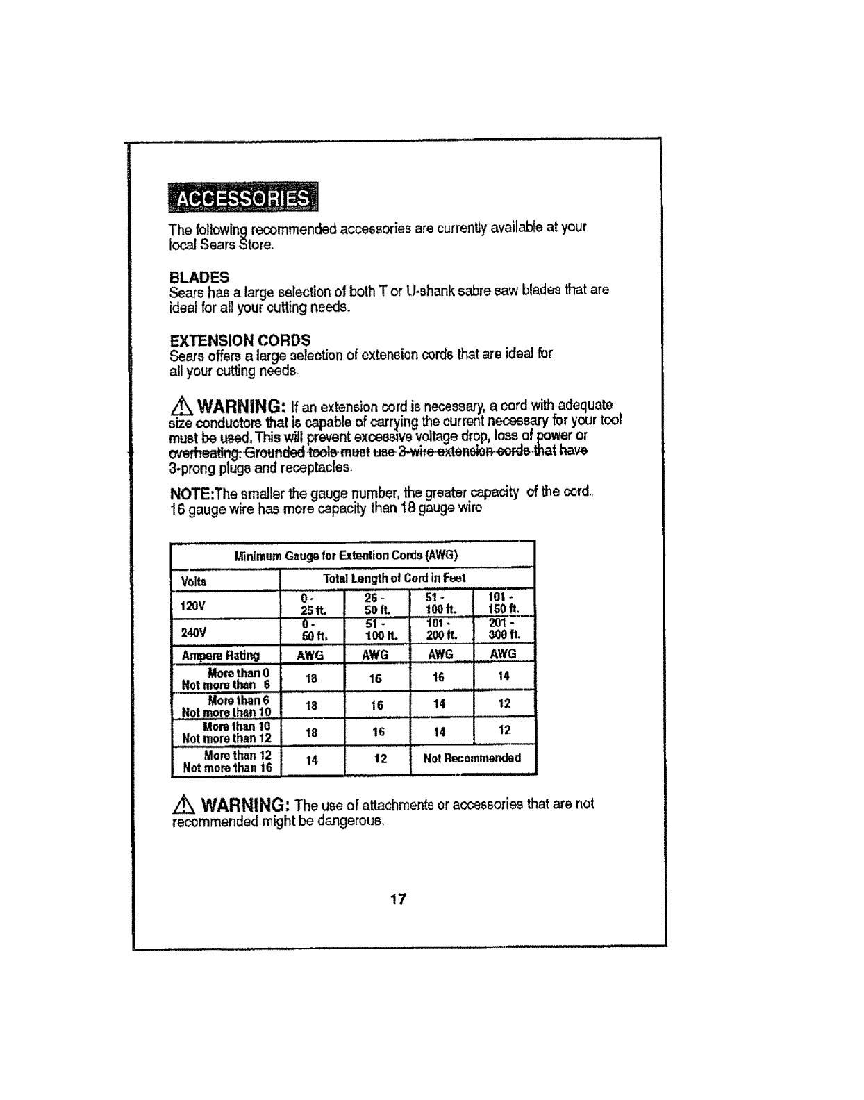 Craftsman 13517240 User Manual SABRE SAW Manuals And Guides L0912086