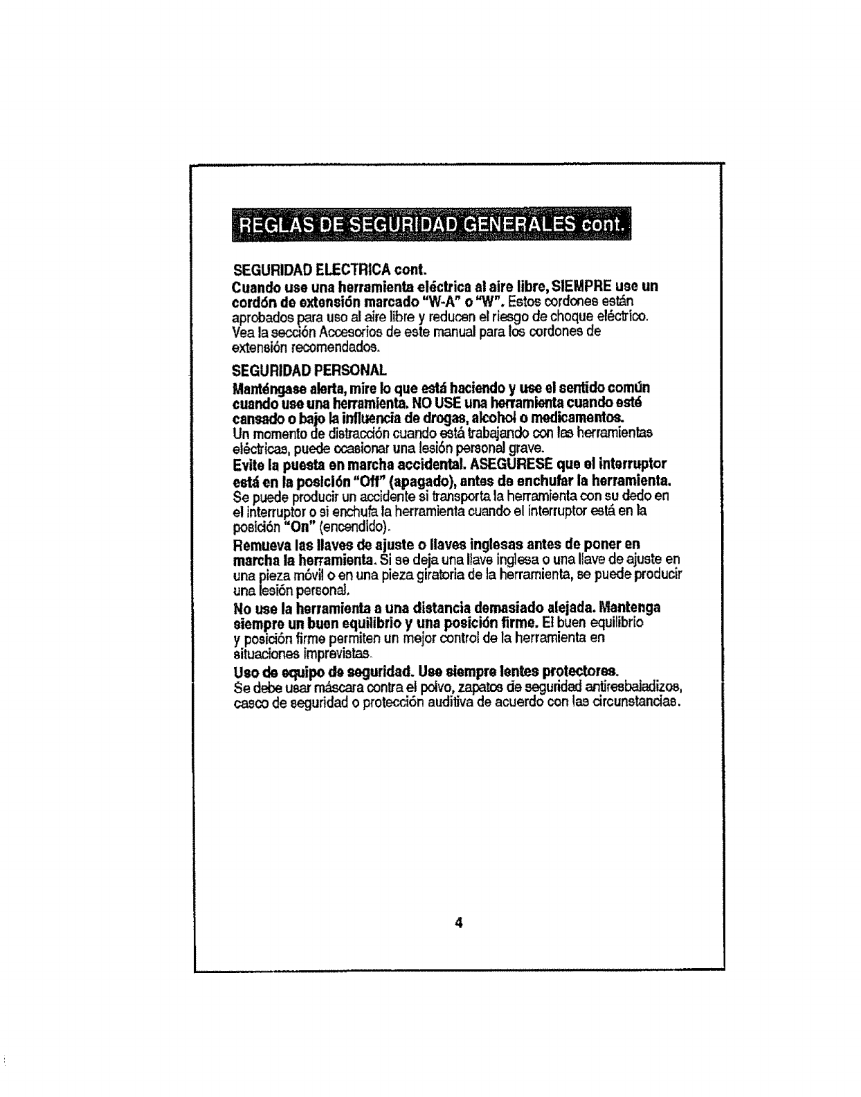 Avoidaccidentalstarting. BESURE switchis "Off" beforeplugging In.