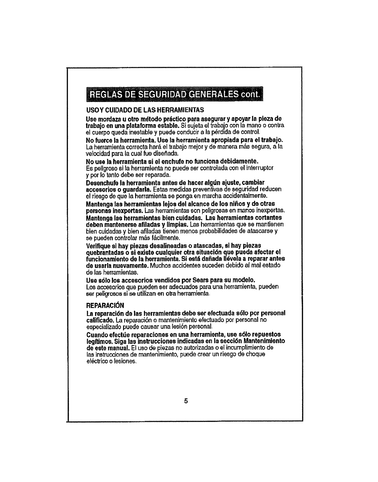 1. La reparaci6n de las herrarnientas SOLO debe ser efectuada per personal