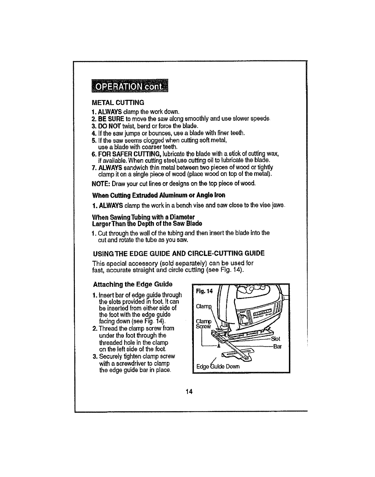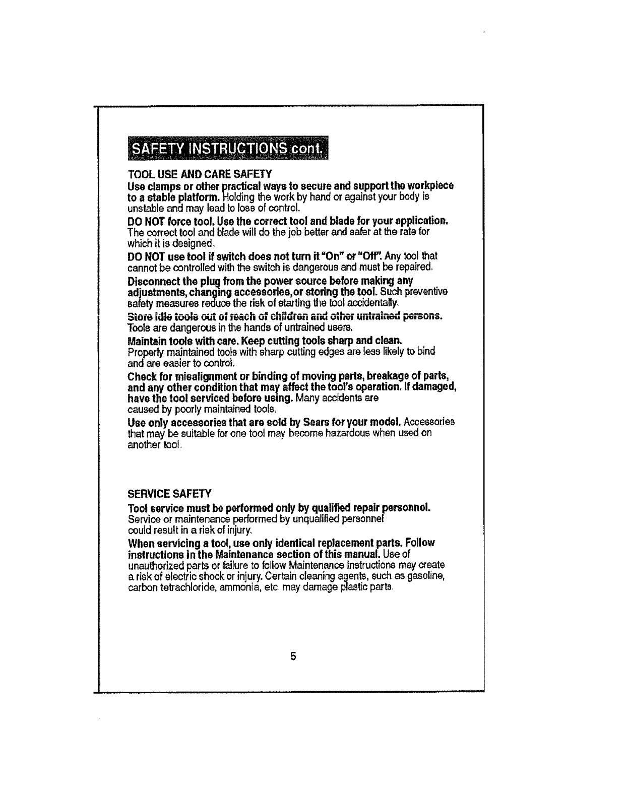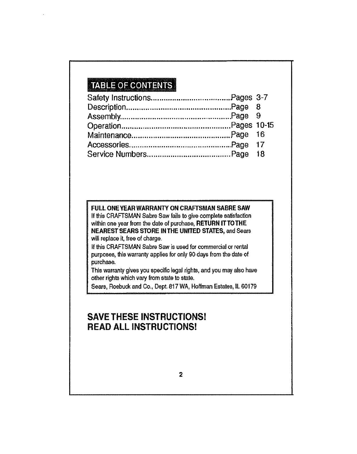 CRAFTSMAN Saw Sabre Manual L0912086 CRAFTSMAN Saw Sabre Owner's Manual, CRAFTSMAN Saw Sabre installation guides