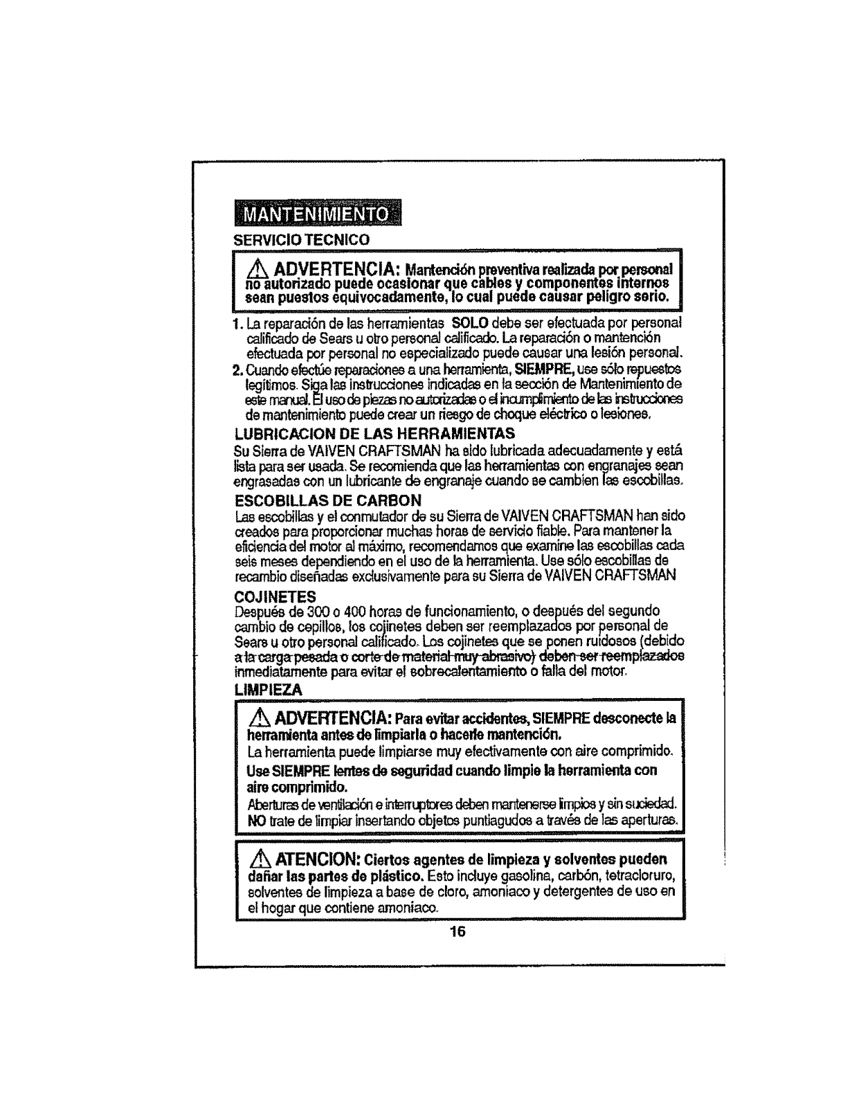 Las escobillas yel c_mmuladorde su Sierra de VAIVEN CRAFTSMAN ban sido