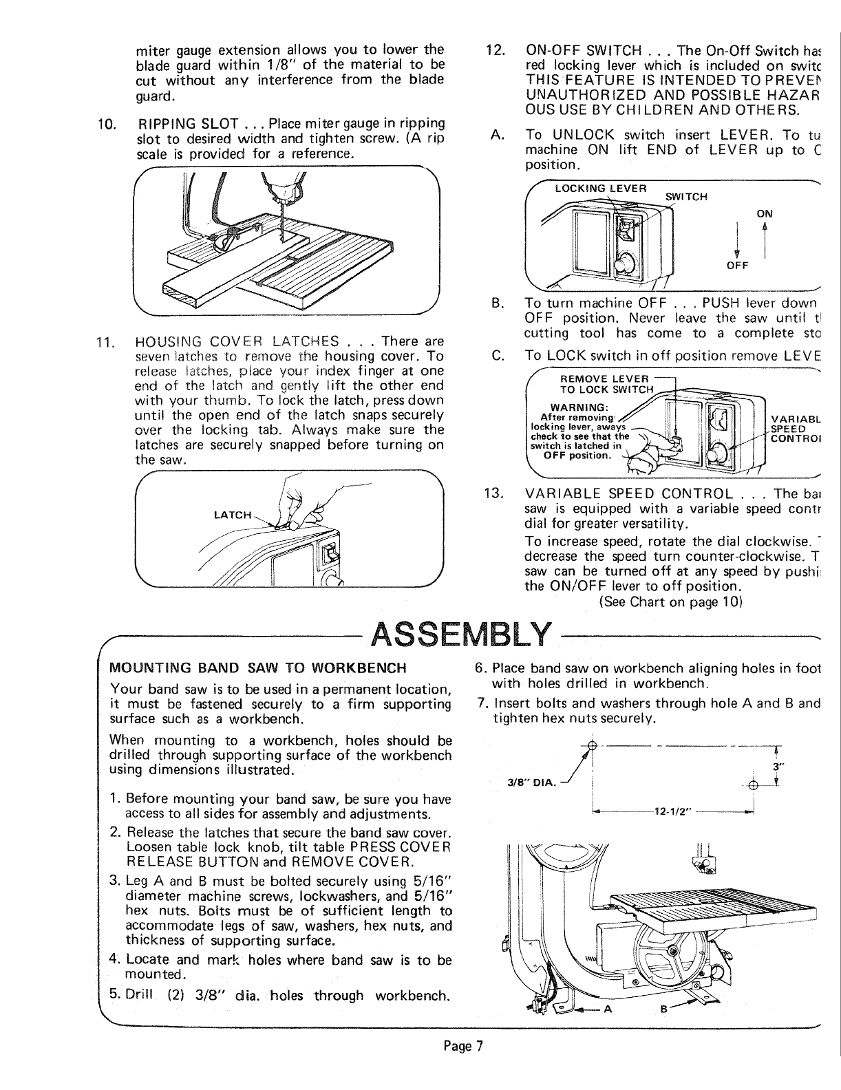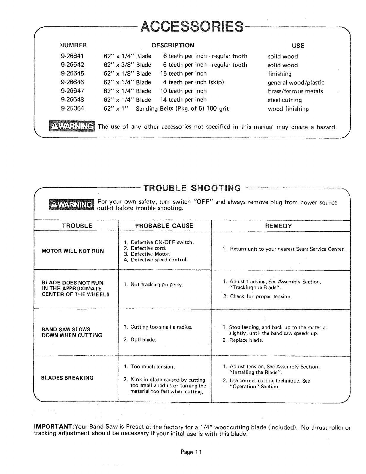 CRAFTSMAN Saw Band Manual L0910139 CRAFTSMAN Saw Band Owner's Manual, CRAFTSMAN Saw Band installation guides