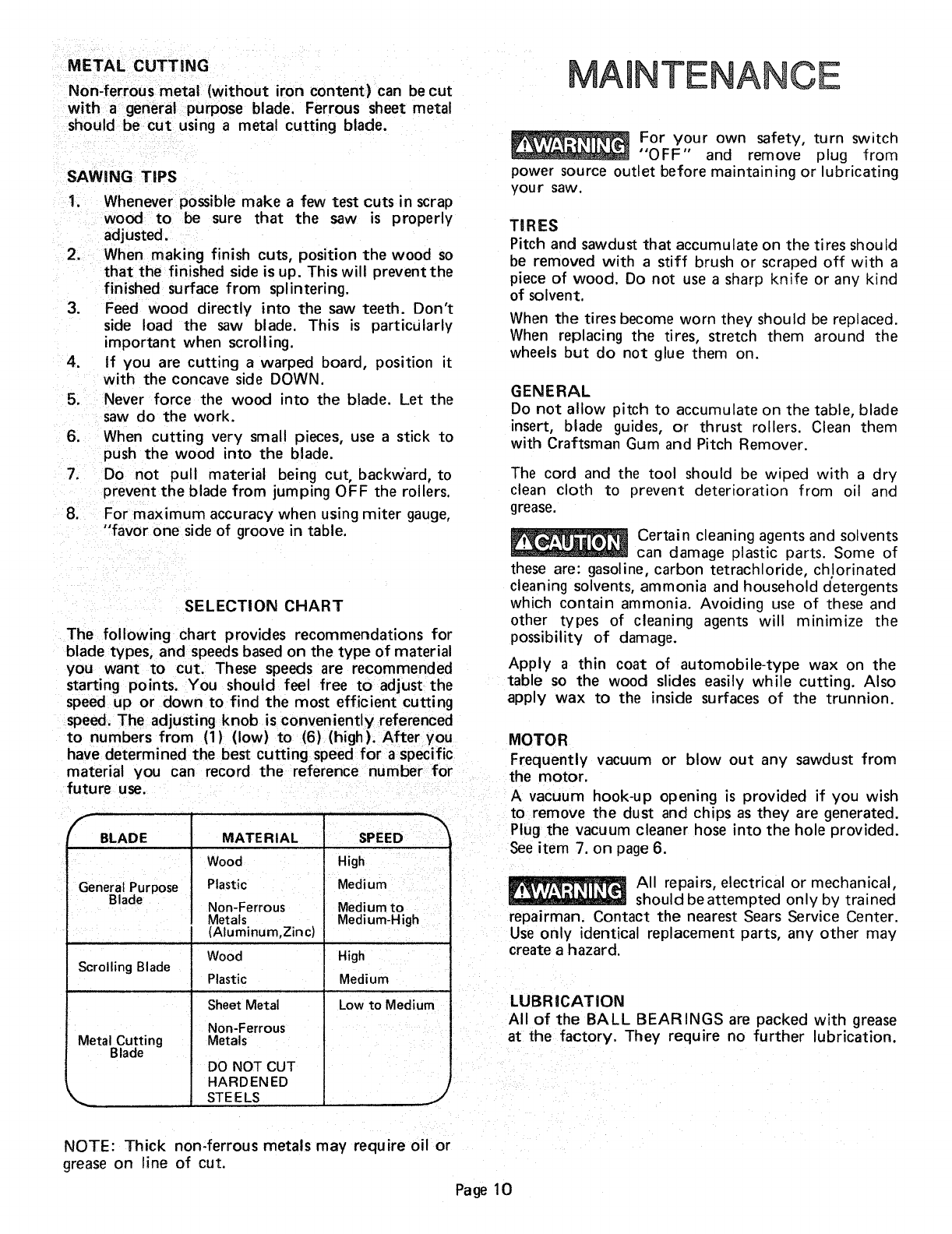 _'- FULL ONE YEAR WARRANTY ON CRAFTSMAN 10" BAND SAW