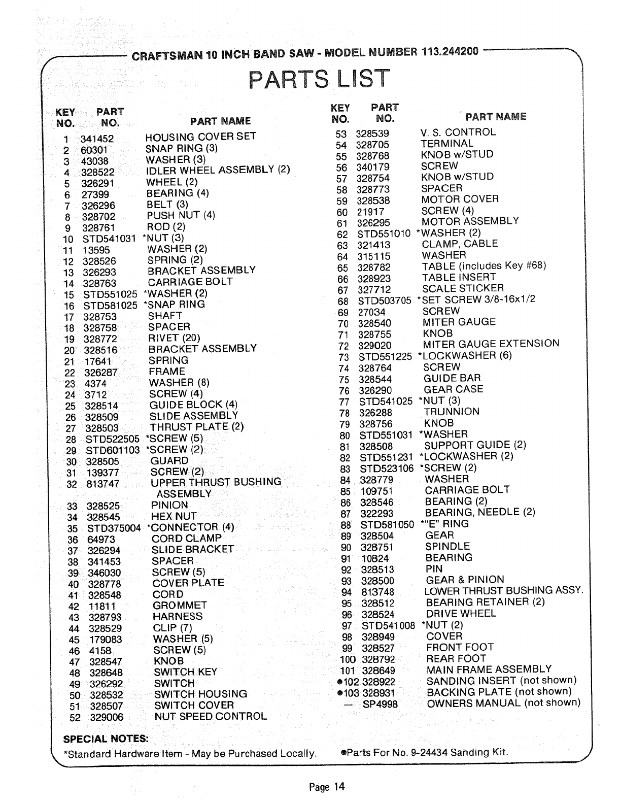 User Manual: Craftsman 135244200 135244200 CRAFTSMAN CRAFTSMAN 10 INCH BAND SAW - Manuals and Guides View the owners manual for your CRAFTSMAN CRAFTSMAN 10 INCH BAND SAW #135244200. Home:Tool Parts:Craftsman Parts:Craftsman CRAFTSMAN 10 INCH BAND SAW Manual