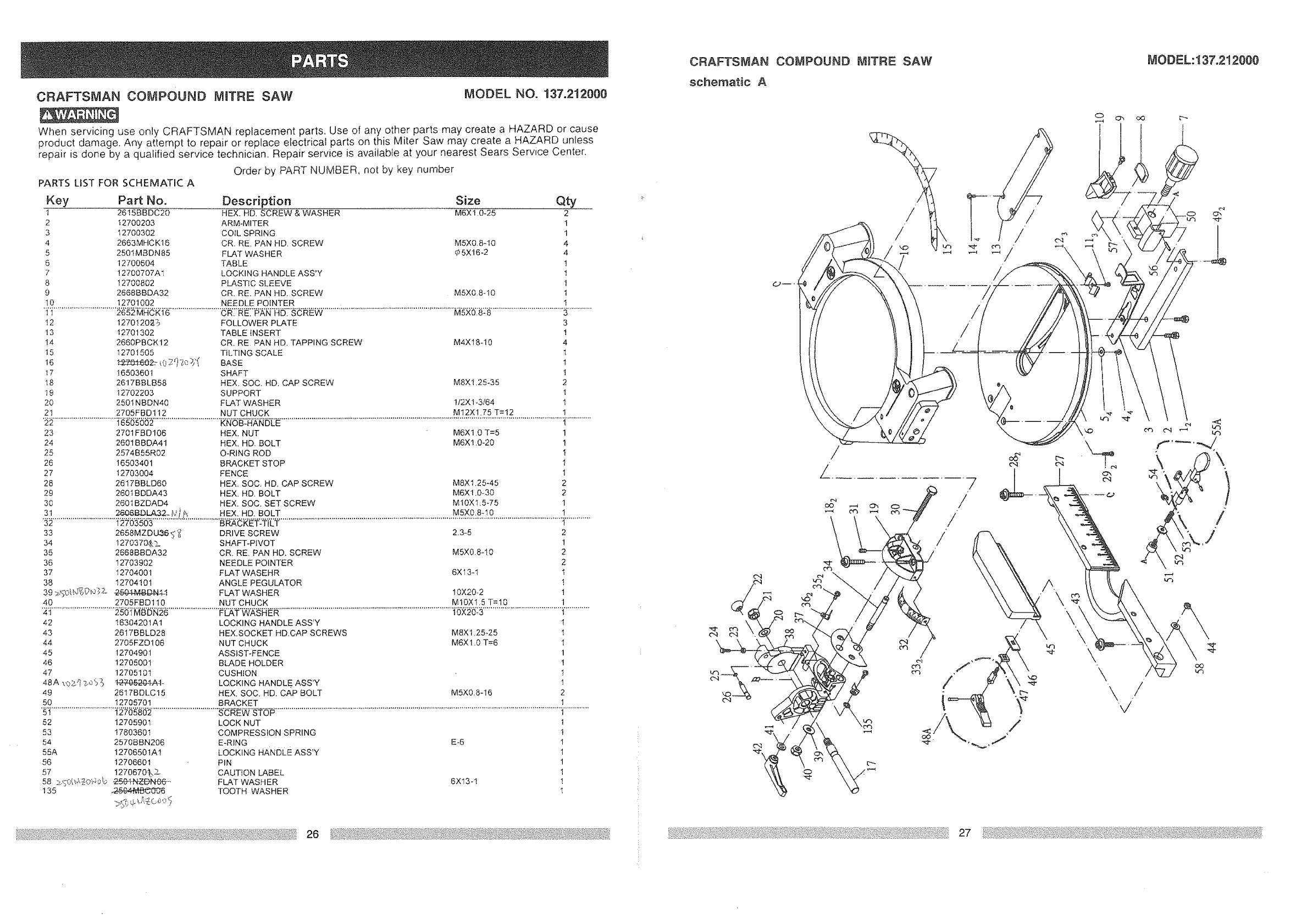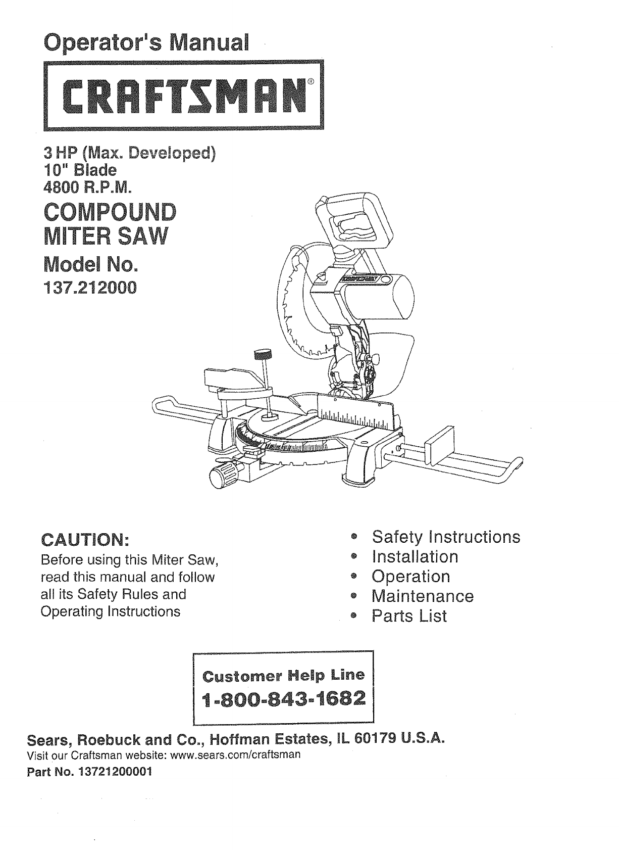User Manual: Craftsman 137212000 137212000 CRAFTSMAN MITTER SAW - Manuals and Guides View the owners manual for your CRAFTSMAN MITTER SAW #137212000. Home:Tool Parts:Craftsman Parts:Craftsman MITTER SAW Manual
