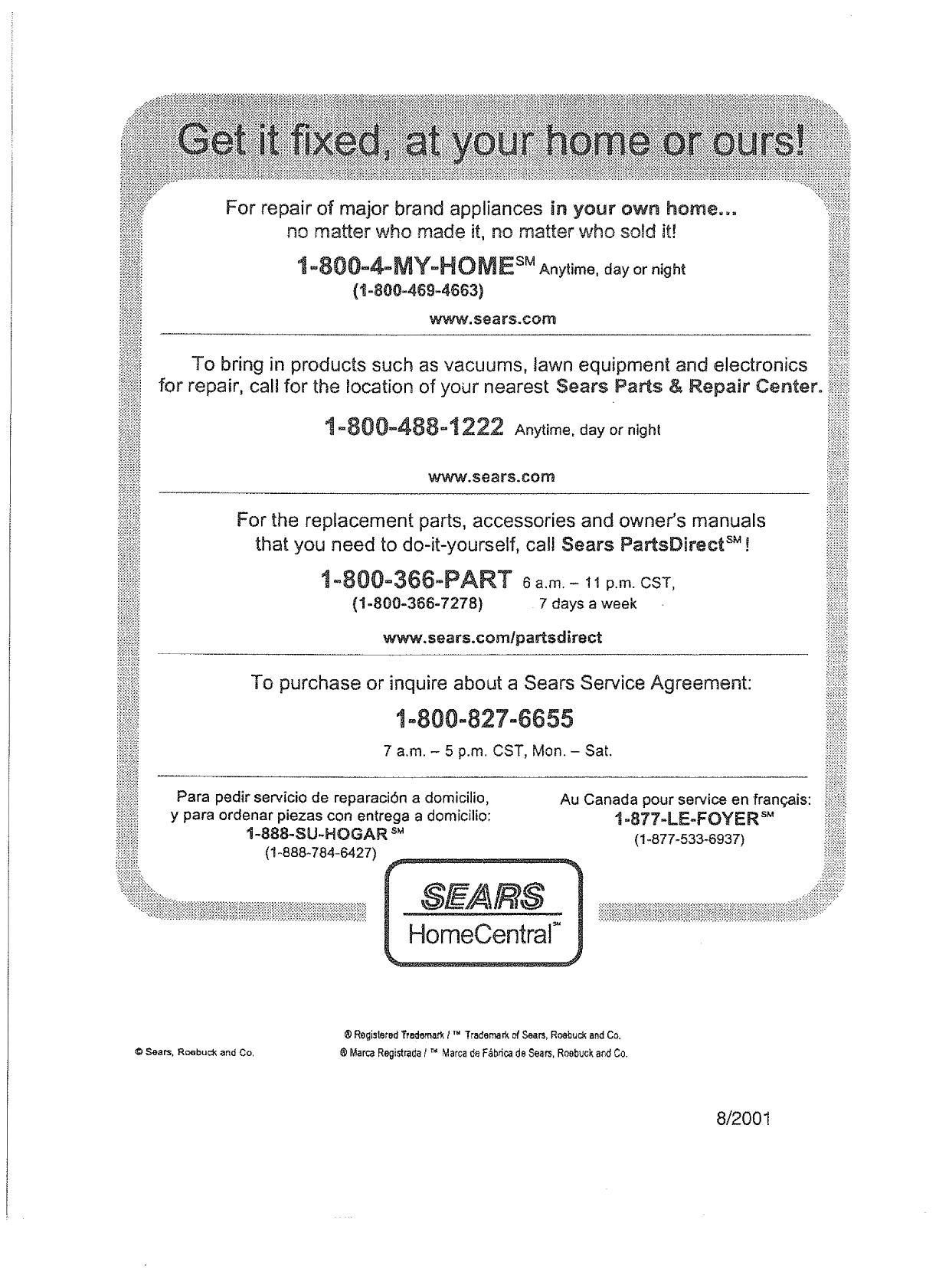® Regislered T_m_nark tTM Trademarkof Sears, Rc_buckand Co,