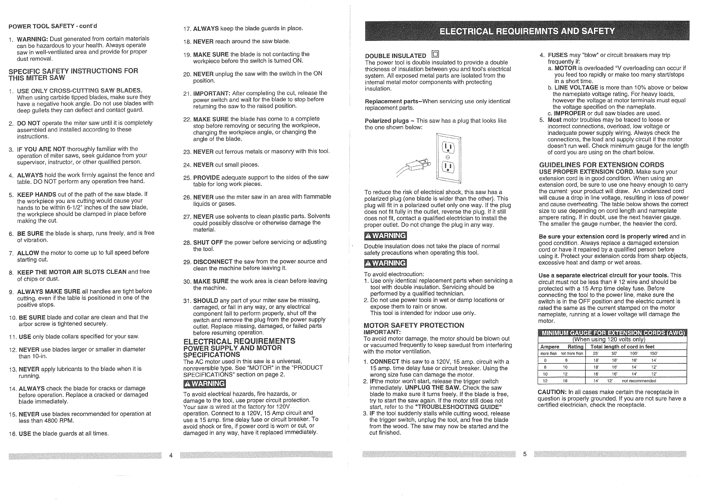 Compound Miter Saw Safety ............... 4