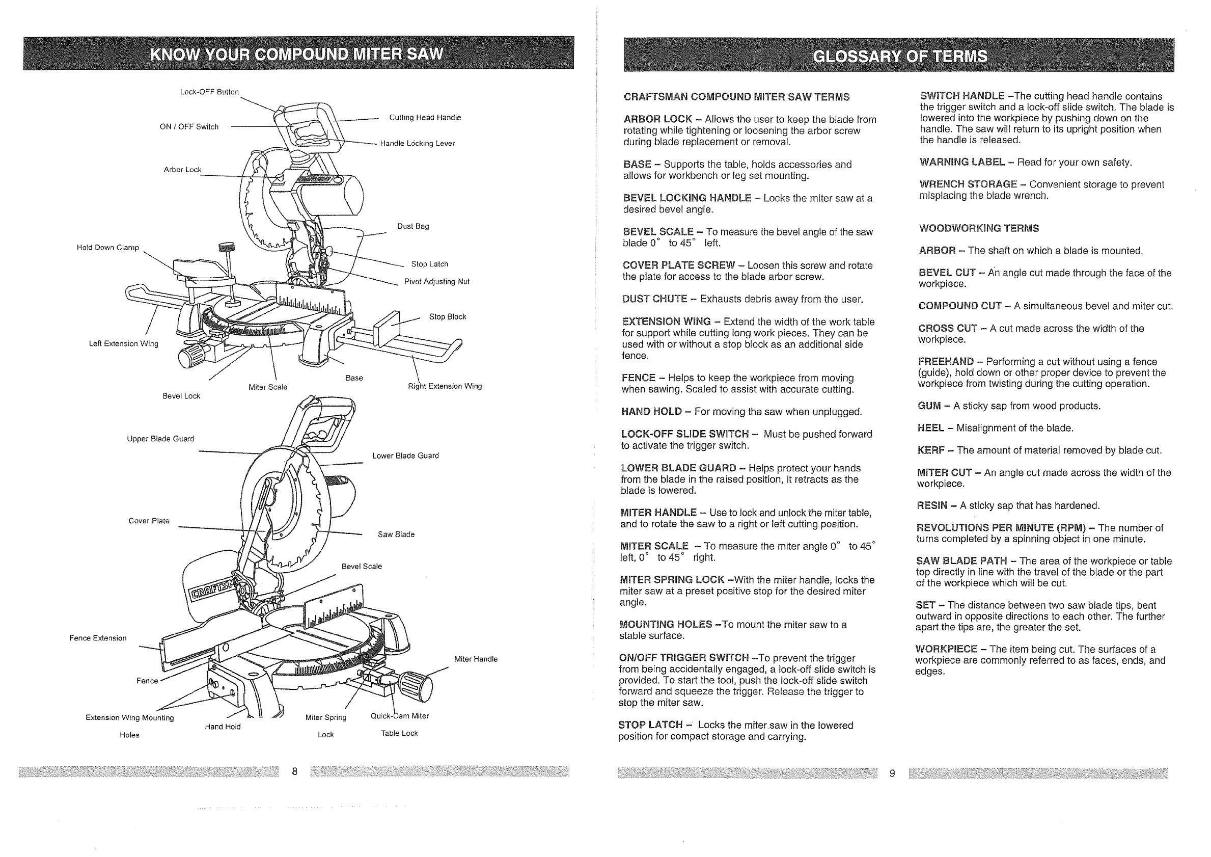 CRAFTSMAN Miter Saw Manual L0905372 CRAFTSMAN Miter Saw Owner's Manual, CRAFTSMAN Miter Saw installation guides