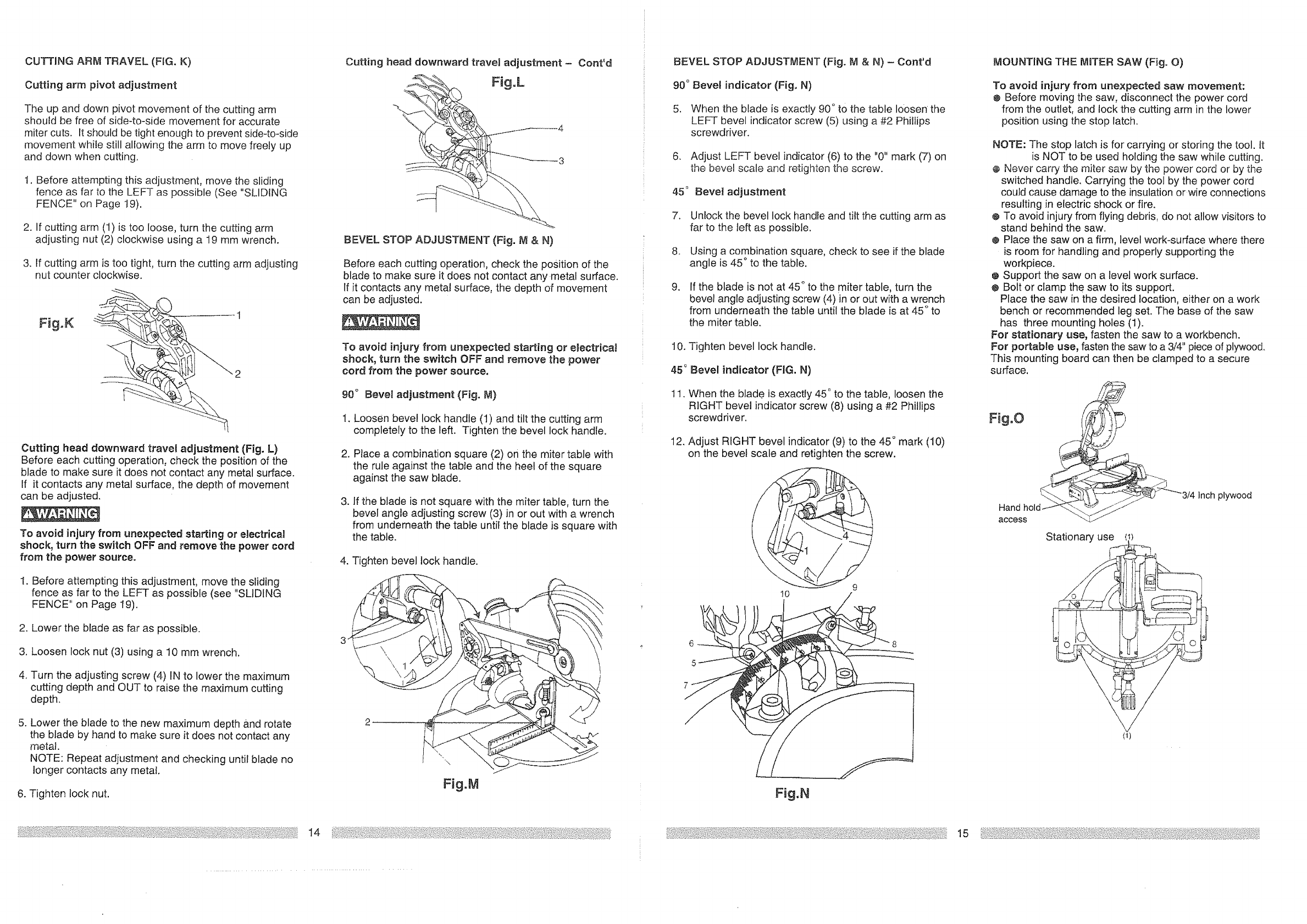 Bevel Positive Stops ............... 0, 45°