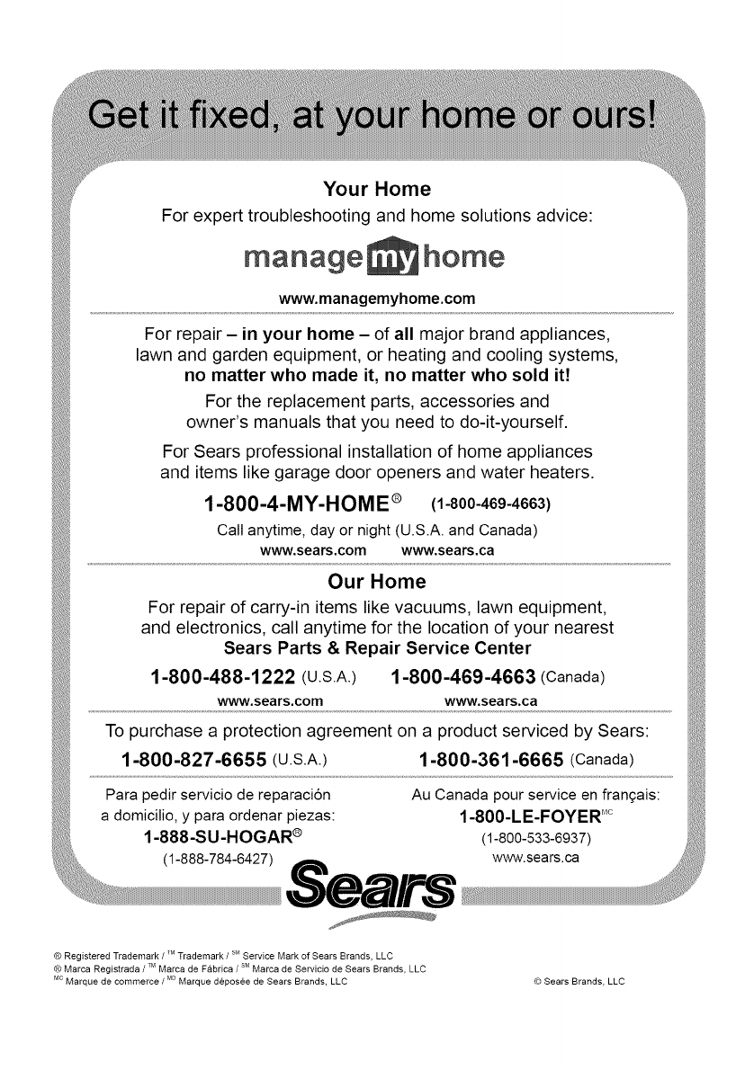 ® Marca Registrada /TM Marca de Fabrica /Marca de Servicio de Sears Brands, LLC