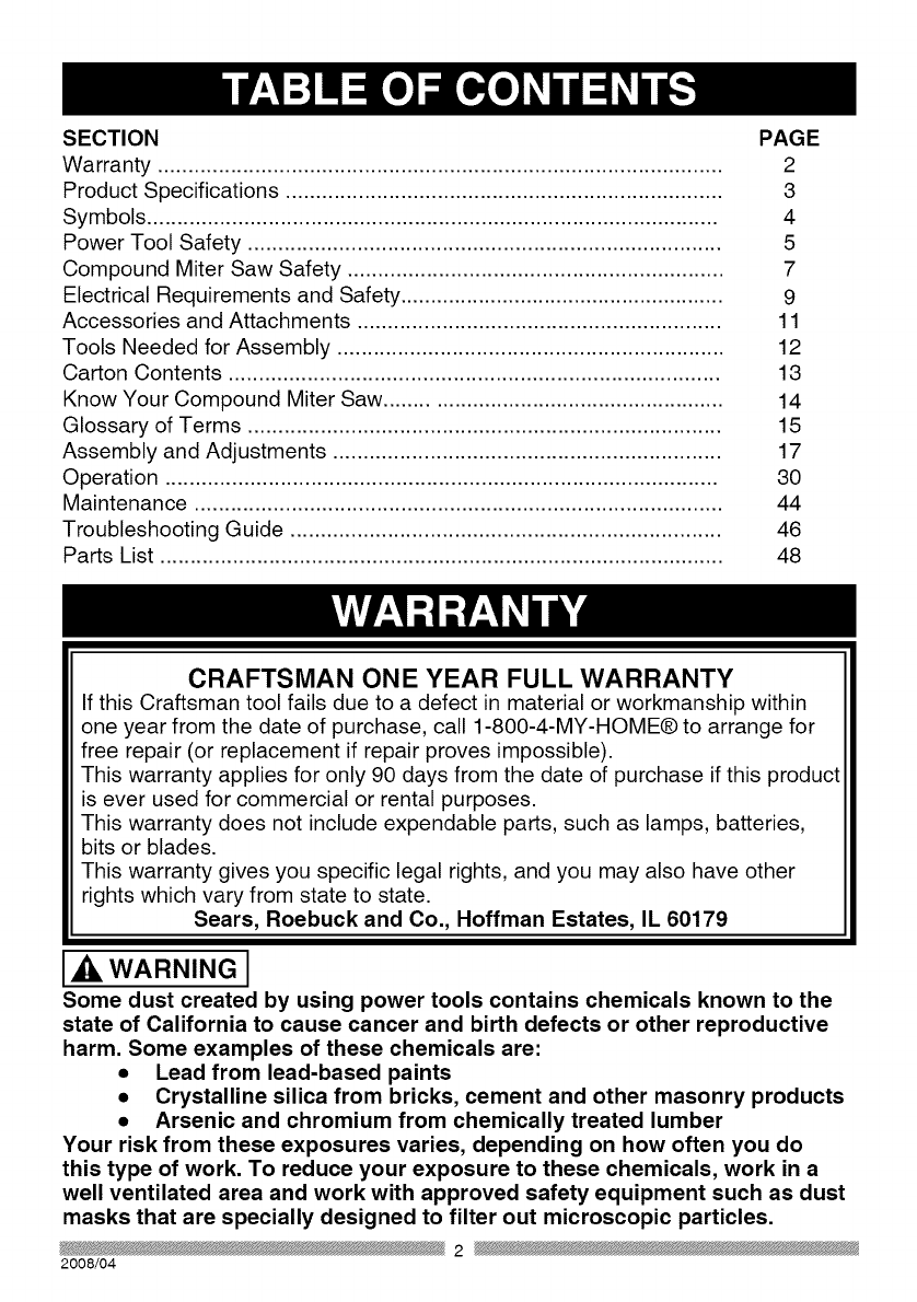 CRAFTSMAN Miter Saw Manual L0807737 CRAFTSMAN Miter Saw Owner's Manual, CRAFTSMAN Miter Saw installation guides