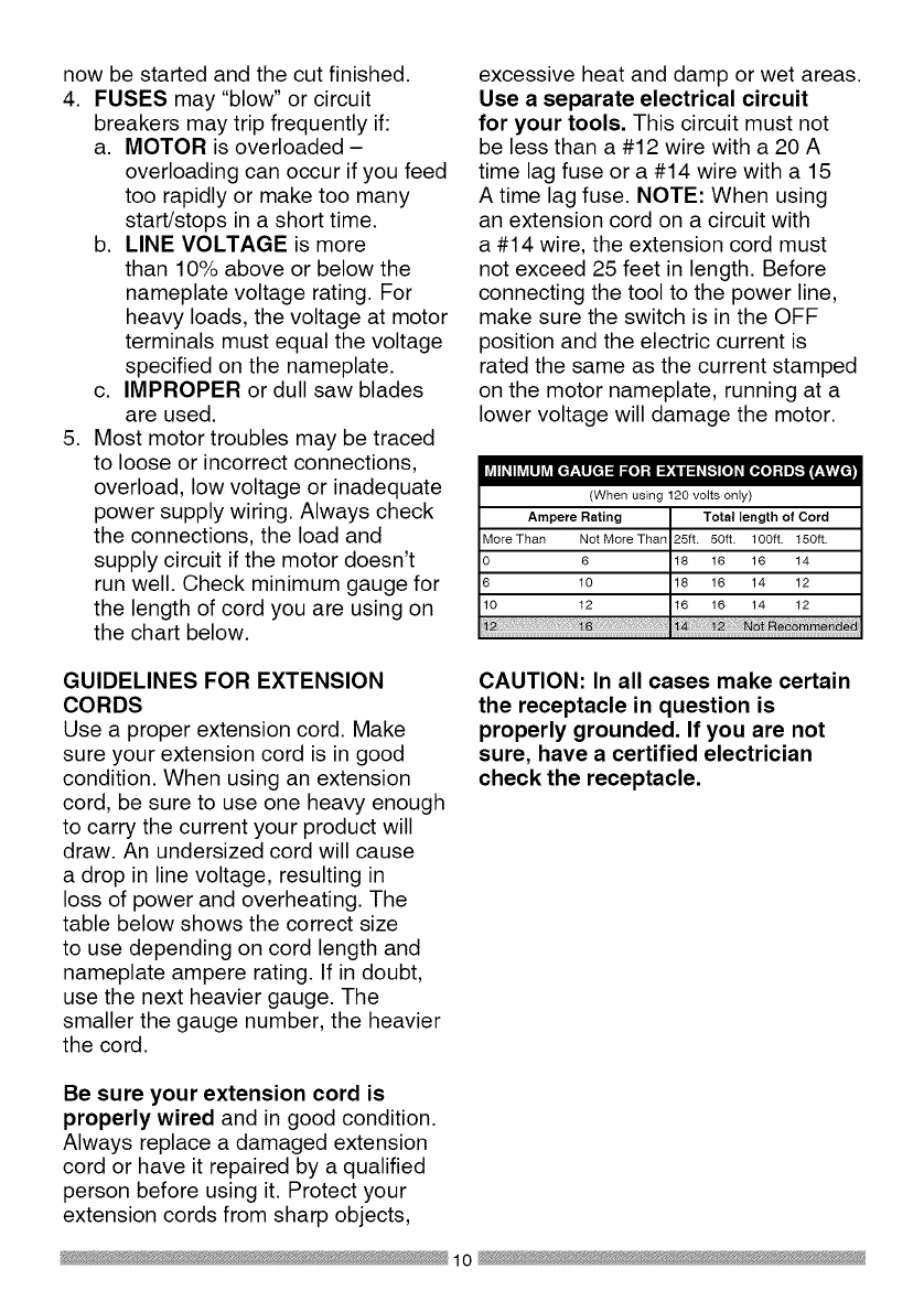 To avoid electrical hazards, fire hazards or damage to the tool, use proper