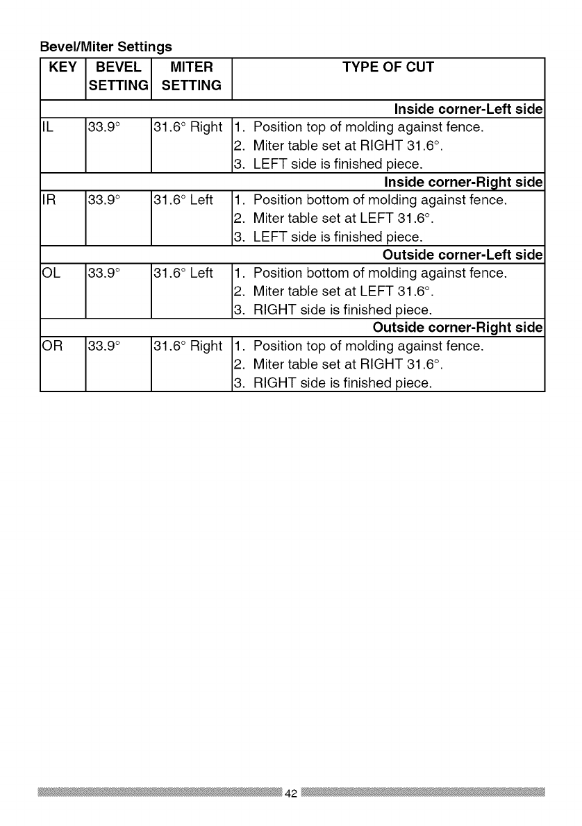 Bevel Positive Stops ..................... 0, 33.9, 45° R & L
