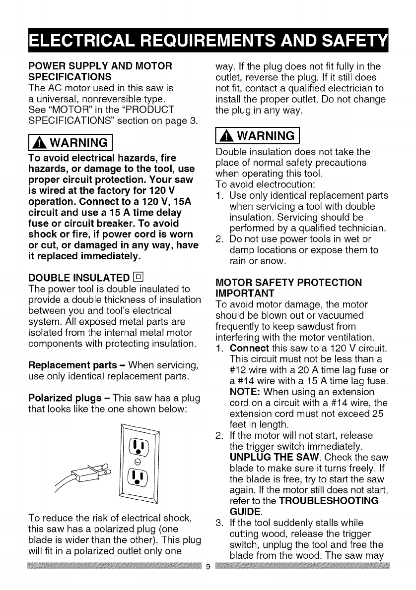 connected to a 110-120 Volt /15 Ampere time delay fuse or circuit breaker.