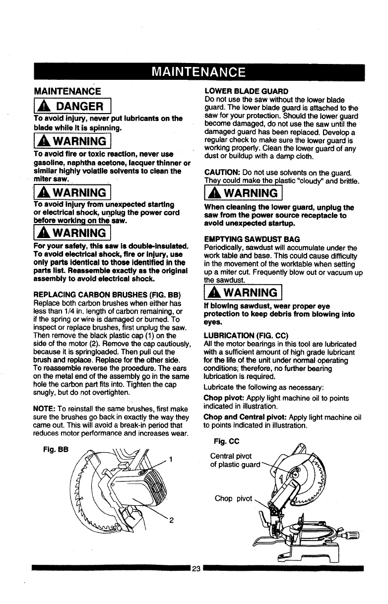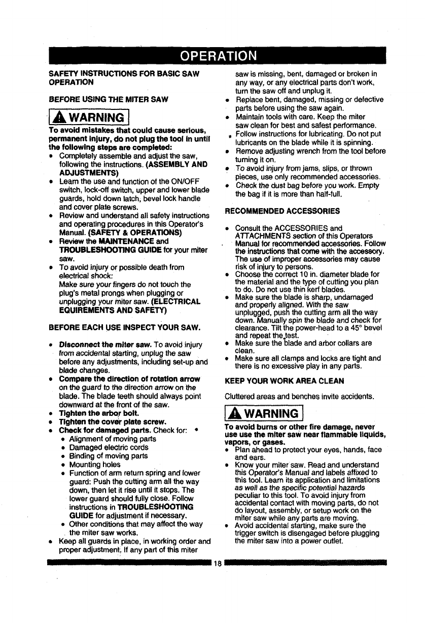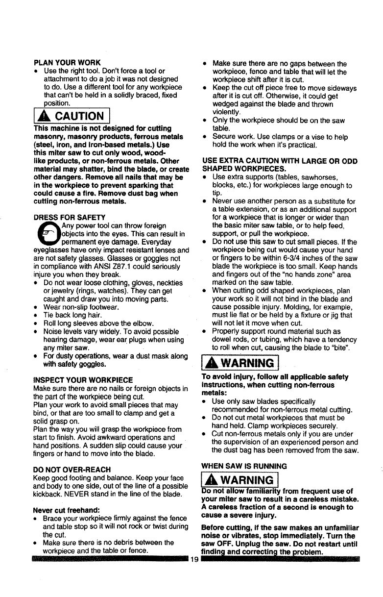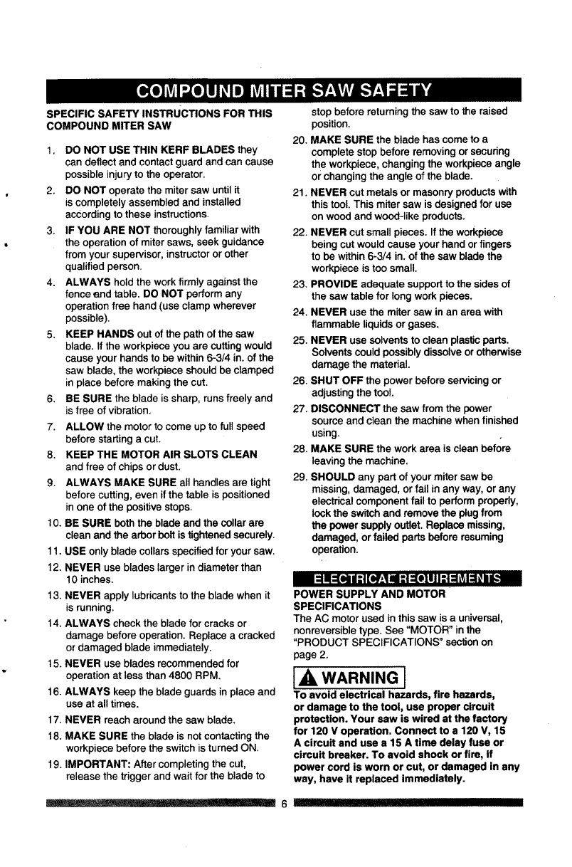 Compound Miter Saw Safety ................. 6