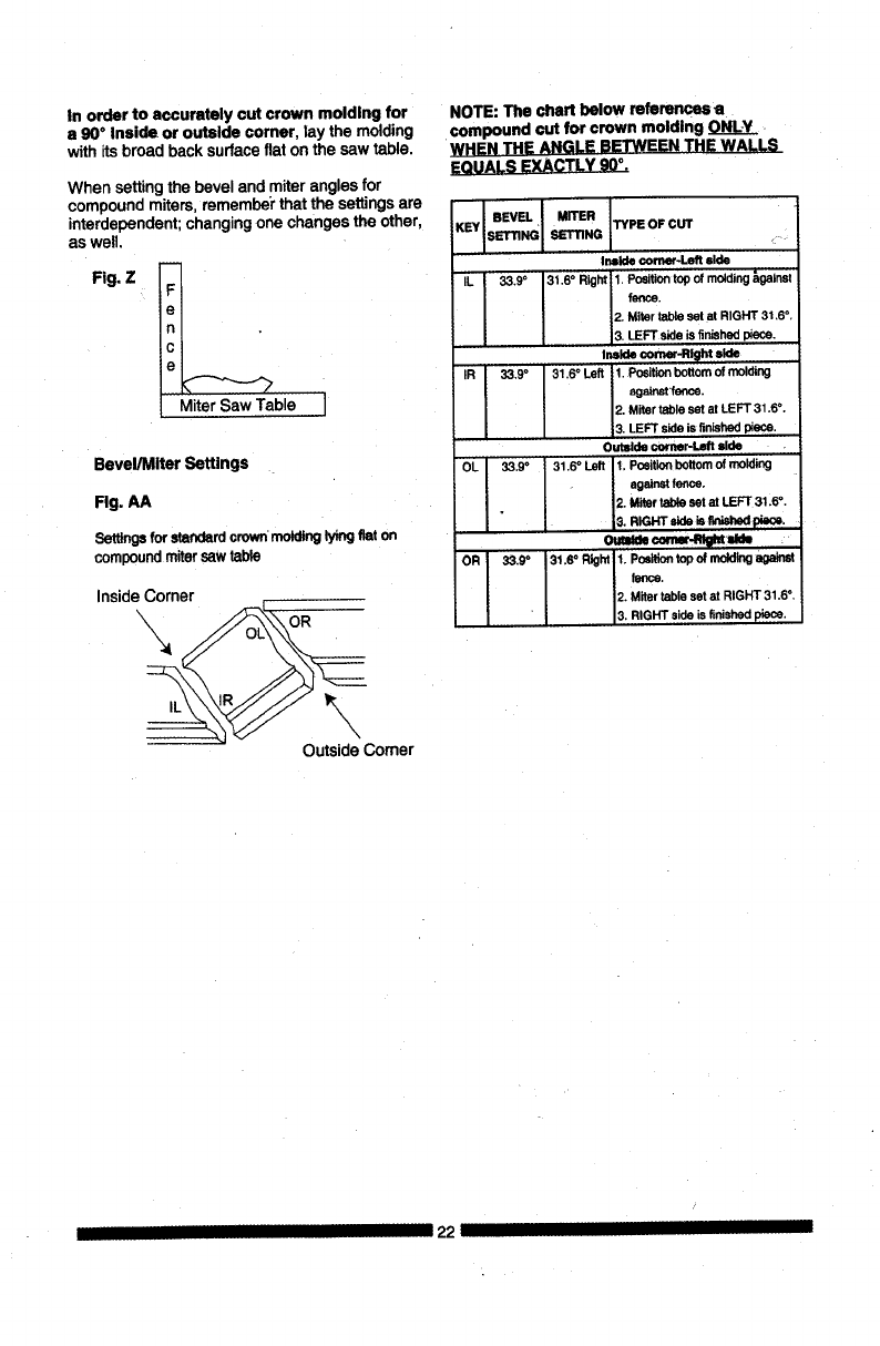 Bevel Positive Stops .... 0°, 45 °L