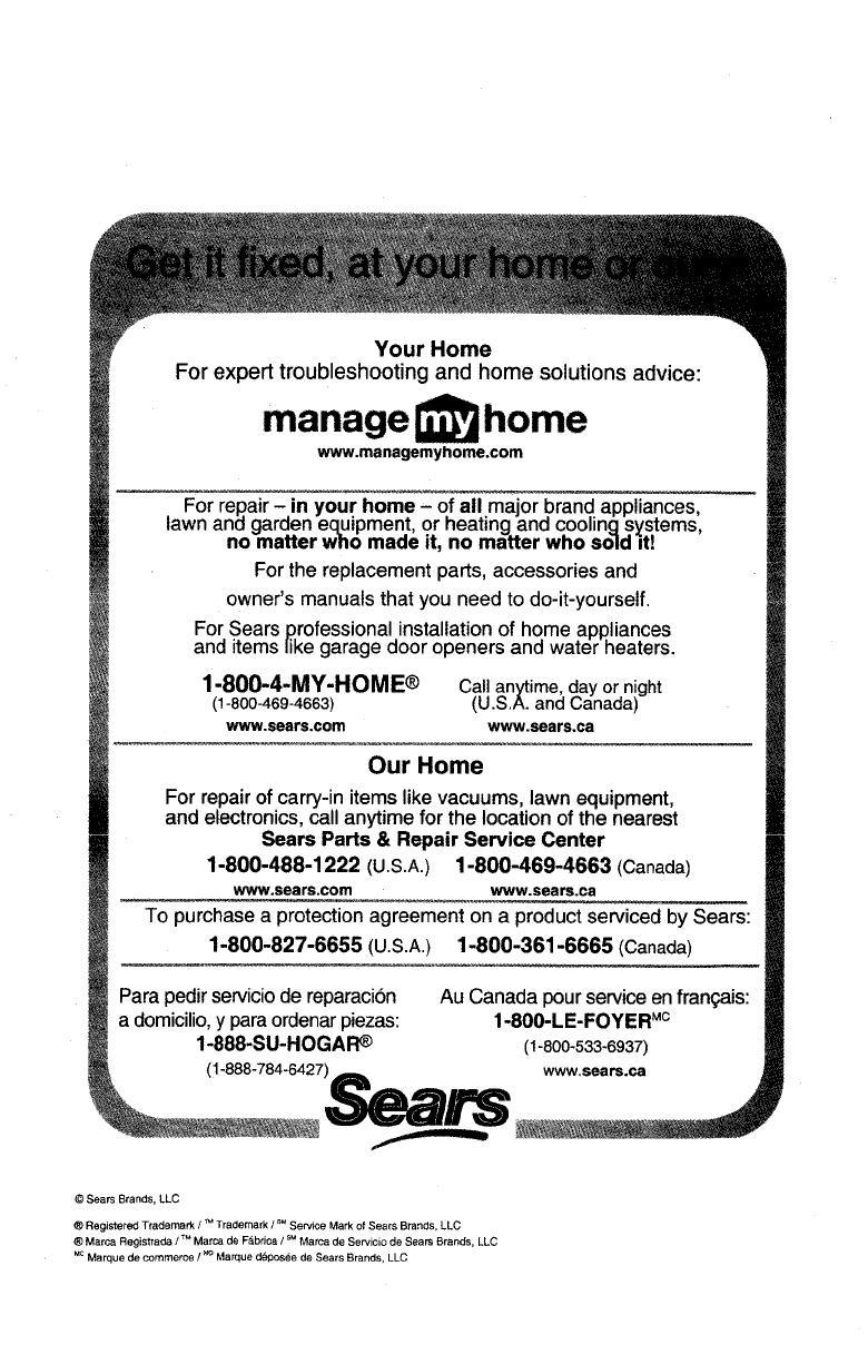 ® Marca Registrada /TM Marca de Fdbrica /sMMarca de Servicio de Sears Brands, LLC