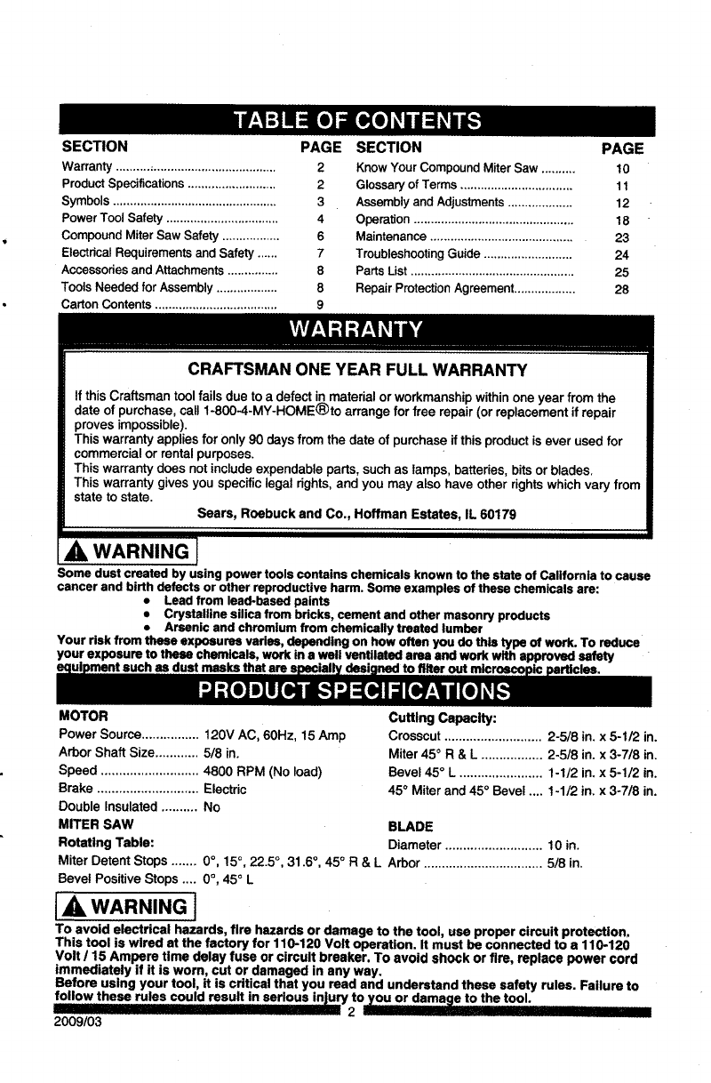 CRAFTSMAN Miter Saw Manual L0911449 CRAFTSMAN Miter Saw Owner's Manual, CRAFTSMAN Miter Saw installation guides