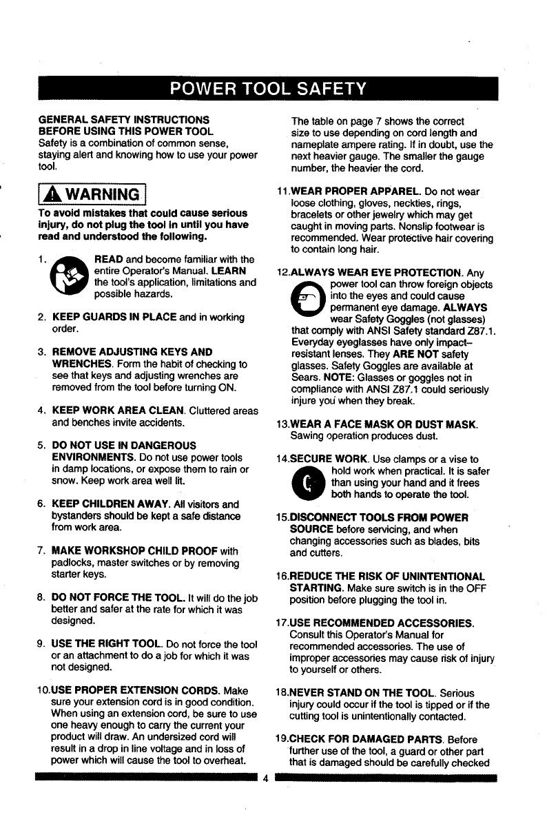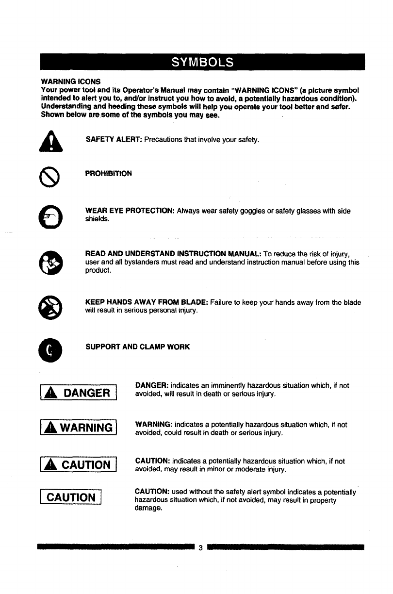 Your power tool and its Operator's Manual may contain "WARNING ICONS" (a picture symbol